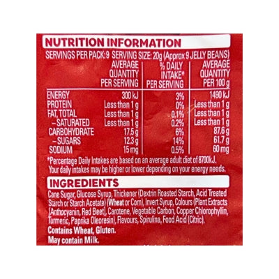 {"id":8363540283688,"title":"Allen's Vegan Jelly Beans 190g","handle":"allens-vegan-jelly-beans-190g","description":"\u003cp\u003eAllen's Jelly Beans lollies will excite your tastebuds with a variety of 9 bright colours and fruity flavours - ripe raspberry, crisp apple, zesty orange, luscious strawberry, tasty aniseed, sweet apricot, yummy vanilla, juicy blackcurrant and wild blueberry. Create your own sweets delight by combining flavours!\u003c\/p\u003e\n\u003c!-- TABS --\u003e\n\u003ch5\u003eReviews\u003c\/h5\u003e\n\u003cp\u003eReviews go here\u003c\/p\u003e\n\u003ch5\u003eIngredients\u003c\/h5\u003e\n\u003cp\u003eAny images, tags, filters, product categories, and any other information on this website showing ingredients, nutrition panels, or allergy statements are for guidance only, as manufacturers often change their formulations without notice. Please contact the manufacturer for the most up-to-date ingredient information, or email us to confirm the ingredients of the stock currently on hand.\u003c\/p\u003e\n\u003c!-- \/TABS --\u003e","published_at":"2025-10-10T16:59:09+11:00","created_at":"2023-07-03T12:40:35+10:00","vendor":"Allen's","type":"Food","tags":["Sweets","Sydney Store"],"price":479,"price_min":479,"price_max":479,"available":true,"price_varies":false,"compare_at_price":null,"compare_at_price_min":0,"compare_at_price_max":0,"compare_at_price_varies":false,"variants":[{"id":45458293424424,"title":"Default Title","option1":"Default Title","option2":null,"option3":null,"sku":"2712584","requires_shipping":true,"taxable":true,"featured_image":null,"available":true,"name":"Allen's Vegan Jelly Beans 190g","public_title":null,"options":["Default Title"],"price":479,"weight":190,"compare_at_price":null,"inventory_quantity":2,"inventory_management":"shopify","inventory_policy":"deny","barcode":"","requires_selling_plan":false,"selling_plan_allocations":[]}],"images":["\/\/www.vegangrocerystore.com.au\/cdn\/shop\/products\/Allen-s-Vegan-Jelly-Beans-190g.jpg?v=1688352035","\/\/www.vegangrocerystore.com.au\/cdn\/shop\/files\/9300605043022_C7N1_EN_1658214051217.webp?v=1688352112","\/\/www.vegangrocerystore.com.au\/cdn\/shop\/files\/allens-NutritionalInfo.jpg?v=1764032120"],"featured_image":"\/\/www.vegangrocerystore.com.au\/cdn\/shop\/products\/Allen-s-Vegan-Jelly-Beans-190g.jpg?v=1688352035","options":["Title"],"media":[{"alt":null,"id":35321435095336,"position":1,"preview_image":{"aspect_ratio":1.0,"height":720,"width":720,"src":"\/\/www.vegangrocerystore.com.au\/cdn\/shop\/products\/Allen-s-Vegan-Jelly-Beans-190g.jpg?v=1688352035"},"aspect_ratio":1.0,"height":720,"media_type":"image","src":"\/\/www.vegangrocerystore.com.au\/cdn\/shop\/products\/Allen-s-Vegan-Jelly-Beans-190g.jpg?v=1688352035","width":720},{"alt":null,"id":35321443320104,"position":2,"preview_image":{"aspect_ratio":1.0,"height":720,"width":720,"src":"\/\/www.vegangrocerystore.com.au\/cdn\/shop\/files\/9300605043022_C7N1_EN_1658214051217.webp?v=1688352112"},"aspect_ratio":1.0,"height":720,"media_type":"image","src":"\/\/www.vegangrocerystore.com.au\/cdn\/shop\/files\/9300605043022_C7N1_EN_1658214051217.webp?v=1688352112","width":720},{"alt":null,"id":43056137797928,"position":3,"preview_image":{"aspect_ratio":1.0,"height":400,"width":400,"src":"\/\/www.vegangrocerystore.com.au\/cdn\/shop\/files\/allens-NutritionalInfo.jpg?v=1764032120"},"aspect_ratio":1.0,"height":400,"media_type":"image","src":"\/\/www.vegangrocerystore.com.au\/cdn\/shop\/files\/allens-NutritionalInfo.jpg?v=1764032120","width":400}],"requires_selling_plan":false,"selling_plan_groups":[],"content":"\u003cp\u003eAllen's Jelly Beans lollies will excite your tastebuds with a variety of 9 bright colours and fruity flavours - ripe raspberry, crisp apple, zesty orange, luscious strawberry, tasty aniseed, sweet apricot, yummy vanilla, juicy blackcurrant and wild blueberry. Create your own sweets delight by combining flavours!\u003c\/p\u003e\n\u003c!-- TABS --\u003e\n\u003ch5\u003eReviews\u003c\/h5\u003e\n\u003cp\u003eReviews go here\u003c\/p\u003e\n\u003ch5\u003eIngredients\u003c\/h5\u003e\n\u003cp\u003eAny images, tags, filters, product categories, and any other information on this website showing ingredients, nutrition panels, or allergy statements are for guidance only, as manufacturers often change their formulations without notice. Please contact the manufacturer for the most up-to-date ingredient information, or email us to confirm the ingredients of the stock currently on hand.\u003c\/p\u003e\n\u003c!-- \/TABS --\u003e"}
