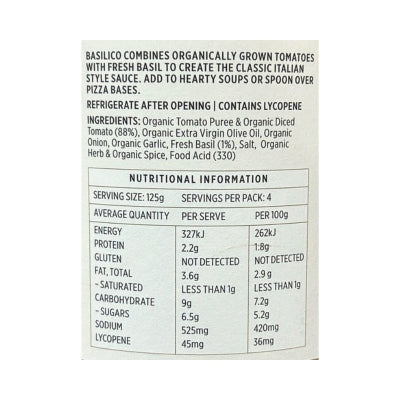 {"id":9488102490408,"title":"Aurelio Pasta Sauce - Basillico Organic 500g","handle":"aurelio-pasta-sauce-basillico-organic-500g","description":"\u003cp\u003e\u003cspan\u003eThe Basilico organic pasta sauce combines organically grown tomatoes with fresh basil to create a classic Italian Style sauce.\u003c\/span\u003e\u003c\/p\u003e\n\u003ch5\u003eReviews\u003c\/h5\u003e\n\u003cp\u003eReviews go here\u003c\/p\u003e\n\u003ch5\u003eIngredients\u003c\/h5\u003e\n\u003cp\u003eAny images, tags, filters, product categories, and any other information on this website showing ingredients, nutrition panels, or allergy statements are for guidance only, as manufacturers often change their formulations without notice. Please contact the manufacturer for the most up-to-date ingredient information, or email us to confirm the ingredients of the stock currently on hand.\u003c\/p\u003e","published_at":"2025-11-19T12:52:03+11:00","created_at":"2024-11-08T10:10:48+11:00","vendor":"Aurelio","type":"General","tags":["Cooking Sauces","Sydney Store"],"price":582,"price_min":582,"price_max":582,"available":true,"price_varies":false,"compare_at_price":null,"compare_at_price_min":0,"compare_at_price_max":0,"compare_at_price_varies":false,"variants":[{"id":49490760532264,"title":"Default Title","option1":"Default Title","option2":null,"option3":null,"sku":"9326142010006","requires_shipping":true,"taxable":false,"featured_image":null,"available":true,"name":"Aurelio Pasta Sauce - Basillico Organic 500g","public_title":null,"options":["Default Title"],"price":582,"weight":0,"compare_at_price":null,"inventory_quantity":1,"inventory_management":"shopify","inventory_policy":"deny","barcode":null,"requires_selling_plan":false,"selling_plan_allocations":[]}],"images":["\/\/www.vegangrocerystore.com.au\/cdn\/shop\/files\/Aurelio_PS_Basilico_Organic_500g_web.jpg?v=1731021049","\/\/www.vegangrocerystore.com.au\/cdn\/shop\/files\/AurelioBasilico-NutritionalInformation.jpg?v=1764740019"],"featured_image":"\/\/www.vegangrocerystore.com.au\/cdn\/shop\/files\/Aurelio_PS_Basilico_Organic_500g_web.jpg?v=1731021049","options":["Title"],"media":[{"alt":null,"id":40439978459432,"position":1,"preview_image":{"aspect_ratio":1.0,"height":2048,"width":2048,"src":"\/\/www.vegangrocerystore.com.au\/cdn\/shop\/files\/Aurelio_PS_Basilico_Organic_500g_web.jpg?v=1731021049"},"aspect_ratio":1.0,"height":2048,"media_type":"image","src":"\/\/www.vegangrocerystore.com.au\/cdn\/shop\/files\/Aurelio_PS_Basilico_Organic_500g_web.jpg?v=1731021049","width":2048},{"alt":null,"id":43122748916008,"position":2,"preview_image":{"aspect_ratio":1.0,"height":400,"width":400,"src":"\/\/www.vegangrocerystore.com.au\/cdn\/shop\/files\/AurelioBasilico-NutritionalInformation.jpg?v=1764740019"},"aspect_ratio":1.0,"height":400,"media_type":"image","src":"\/\/www.vegangrocerystore.com.au\/cdn\/shop\/files\/AurelioBasilico-NutritionalInformation.jpg?v=1764740019","width":400}],"requires_selling_plan":false,"selling_plan_groups":[],"content":"\u003cp\u003e\u003cspan\u003eThe Basilico organic pasta sauce combines organically grown tomatoes with fresh basil to create a classic Italian Style sauce.\u003c\/span\u003e\u003c\/p\u003e\n\u003ch5\u003eReviews\u003c\/h5\u003e\n\u003cp\u003eReviews go here\u003c\/p\u003e\n\u003ch5\u003eIngredients\u003c\/h5\u003e\n\u003cp\u003eAny images, tags, filters, product categories, and any other information on this website showing ingredients, nutrition panels, or allergy statements are for guidance only, as manufacturers often change their formulations without notice. Please contact the manufacturer for the most up-to-date ingredient information, or email us to confirm the ingredients of the stock currently on hand.\u003c\/p\u003e"}