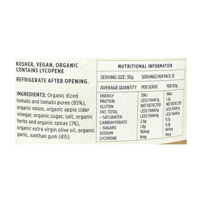{"id":9488100229416,"title":"Aurelio Salsa - Mild Organic 300g","handle":"aurelio-salsa-mild-organic-300g","description":"\u003cp\u003e\u003cspan\u003ePerfect for Mexican dishes and dipping.\u003c\/span\u003e\u003c\/p\u003e\n\u003ch5\u003eReviews\u003c\/h5\u003e\n\u003cp\u003eReviews go here\u003c\/p\u003e\n\u003ch5\u003eIngredients\u003c\/h5\u003e\n\u003cp\u003eAny images, tags, filters, product categories, and any other information on this website showing ingredients, nutrition panels, or allergy statements are for guidance only, as manufacturers often change their formulations without notice. Please contact the manufacturer for the most up-to-date ingredient information, or email us to confirm the ingredients of the stock currently on hand.\u003c\/p\u003e","published_at":"2025-11-19T13:52:59+11:00","created_at":"2024-11-08T10:06:51+11:00","vendor":"Aurelio","type":"General","tags":["Salsa","Sydney Store"],"price":482,"price_min":482,"price_max":482,"available":true,"price_varies":false,"compare_at_price":null,"compare_at_price_min":0,"compare_at_price_max":0,"compare_at_price_varies":false,"variants":[{"id":49490735890728,"title":"Default Title","option1":"Default Title","option2":null,"option3":null,"sku":"9326142011003","requires_shipping":true,"taxable":false,"featured_image":null,"available":true,"name":"Aurelio Salsa - Mild Organic 300g","public_title":null,"options":["Default Title"],"price":482,"weight":0,"compare_at_price":null,"inventory_quantity":3,"inventory_management":"shopify","inventory_policy":"deny","barcode":null,"requires_selling_plan":false,"selling_plan_allocations":[]}],"images":["\/\/www.vegangrocerystore.com.au\/cdn\/shop\/files\/Aurelio_Salsa_Mild_Organic_300g_web.jpg?v=1731020811","\/\/www.vegangrocerystore.com.au\/cdn\/shop\/files\/AurelioSalsaMild-NutritionalInformation.jpg?v=1764731173"],"featured_image":"\/\/www.vegangrocerystore.com.au\/cdn\/shop\/files\/Aurelio_Salsa_Mild_Organic_300g_web.jpg?v=1731020811","options":["Title"],"media":[{"alt":null,"id":40439950016808,"position":1,"preview_image":{"aspect_ratio":1.0,"height":2048,"width":2048,"src":"\/\/www.vegangrocerystore.com.au\/cdn\/shop\/files\/Aurelio_Salsa_Mild_Organic_300g_web.jpg?v=1731020811"},"aspect_ratio":1.0,"height":2048,"media_type":"image","src":"\/\/www.vegangrocerystore.com.au\/cdn\/shop\/files\/Aurelio_Salsa_Mild_Organic_300g_web.jpg?v=1731020811","width":2048},{"alt":null,"id":43121817518376,"position":2,"preview_image":{"aspect_ratio":1.0,"height":400,"width":400,"src":"\/\/www.vegangrocerystore.com.au\/cdn\/shop\/files\/AurelioSalsaMild-NutritionalInformation.jpg?v=1764731173"},"aspect_ratio":1.0,"height":400,"media_type":"image","src":"\/\/www.vegangrocerystore.com.au\/cdn\/shop\/files\/AurelioSalsaMild-NutritionalInformation.jpg?v=1764731173","width":400}],"requires_selling_plan":false,"selling_plan_groups":[],"content":"\u003cp\u003e\u003cspan\u003ePerfect for Mexican dishes and dipping.\u003c\/span\u003e\u003c\/p\u003e\n\u003ch5\u003eReviews\u003c\/h5\u003e\n\u003cp\u003eReviews go here\u003c\/p\u003e\n\u003ch5\u003eIngredients\u003c\/h5\u003e\n\u003cp\u003eAny images, tags, filters, product categories, and any other information on this website showing ingredients, nutrition panels, or allergy statements are for guidance only, as manufacturers often change their formulations without notice. Please contact the manufacturer for the most up-to-date ingredient information, or email us to confirm the ingredients of the stock currently on hand.\u003c\/p\u003e"}