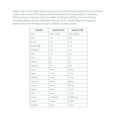 {"id":9848465326376,"title":"Botanika Blends Plant Protein Vanilla Cake Batter 1kg","handle":"botanika-blends-plant-protein-vanilla-cake-batter-1kg","description":"\u003cp\u003e\u003cspan class=\"NormalTextRun SCXW165294760 BCX0\"\u003eOur\u003cspan\u003e \u003c\/span\u003e\u003c\/span\u003e\u003cspan class=\"NormalTextRun ContextualSpellingAndGrammarErrorV2Themed SCXW165294760 BCX0\"\u003ebest selling\u003c\/span\u003e\u003cspan class=\"NormalTextRun SCXW165294760 BCX0\"\u003e\u003cspan\u003e \u003c\/span\u003e\u003c\/span\u003e\u003cspan class=\"NormalTextRun SCXW165294760 BCX0\"\u003eVanilla Cake Batter Plant Based Protein is made with clean, all-natural ingredients\u003c\/span\u003e\u003cspan class=\"NormalTextRun SCXW165294760 BCX0\"\u003e.\u003cspan\u003e \u003c\/span\u003e\u003c\/span\u003e\u003cspan class=\"NormalTextRun SCXW165294760 BCX0\"\u003eN\u003c\/span\u003e\u003cspan class=\"NormalTextRun SCXW165294760 BCX0\"\u003eo hidden nasties, no artificial additives. Each serve delivers organic pea and brown rice protein, enriched with prebiotics, probiotics, and digestive enzymes to support gut health and muscle reco\u003c\/span\u003e\u003cspan class=\"NormalTextRun SCXW165294760 BCX0\"\u003every.\u003c\/span\u003e\u003cspan class=\"NormalTextRun SCXW165294760 BCX0\"\u003e\u003cspan\u003e \u003c\/span\u003e\u003c\/span\u003e\u003cspan class=\"NormalTextRun SCXW165294760 BCX0\"\u003eWe've\u003c\/span\u003e\u003cspan class=\"NormalTextRun SCXW165294760 BCX0\"\u003e\u003cspan\u003e \u003c\/span\u003ealso included functional ingredients and key minerals to nourish your body and help you thrive, every day. Crafted with care in Australia\u003c\/span\u003e\u003cspan class=\"NormalTextRun SCXW165294760 BCX0\"\u003e\u003cspan\u003e \u003c\/span\u003e–\u003cspan\u003e \u003c\/span\u003e\u003c\/span\u003e\u003cspan class=\"NormalTextRun ContextualSpellingAndGrammarErrorV2Themed SCXW165294760 BCX0\"\u003eit's\u003c\/span\u003e\u003cspan class=\"NormalTextRun SCXW165294760 BCX0\"\u003e\u003cspan\u003e \u003c\/span\u003e\u003c\/span\u003e\u003cspan class=\"NormalTextRun SCXW165294760 BCX0\"\u003epure, plant powered nutrition you can feel good about.\u003c\/span\u003e\u003c\/p\u003e\n\u003ch5\u003eReviews\u003c\/h5\u003e\n\u003cp\u003eReviews go here\u003c\/p\u003e\n\u003ch5\u003eIngredients\u003c\/h5\u003e\n\u003cp\u003eAny images, tags, filters, product categories, and any other information on this website showing ingredients, nutrition panels, or allergy statements are for guidance only, as manufacturers often change their formulations without notice. Please contact the manufacturer for the most up-to-date ingredient information, or email us to confirm the ingredients of the stock currently on hand.\u003c\/p\u003e","published_at":"2025-10-13T12:20:12+11:00","created_at":"2025-10-13T12:20:11+11:00","vendor":"Botanika Blends","type":"","tags":["Protein Powders","Sydney Store"],"price":6695,"price_min":6695,"price_max":6695,"available":true,"price_varies":false,"compare_at_price":null,"compare_at_price_min":0,"compare_at_price_max":0,"compare_at_price_varies":false,"variants":[{"id":50826246717736,"title":"Default Title","option1":"Default Title","option2":null,"option3":null,"sku":"9350181003767","requires_shipping":true,"taxable":true,"featured_image":null,"available":true,"name":"Botanika Blends Plant Protein Vanilla Cake Batter 1kg","public_title":null,"options":["Default Title"],"price":6695,"weight":0,"compare_at_price":null,"inventory_quantity":1,"inventory_management":"shopify","inventory_policy":"deny","barcode":null,"requires_selling_plan":false,"selling_plan_allocations":[]}],"images":["\/\/www.vegangrocerystore.com.au\/cdn\/shop\/files\/BB_Plant-Protein_Vanilla-Cake-Batter_1kg_Pouch_FOP_WEB_1024x1024-2x.png?v=1760318415","\/\/www.vegangrocerystore.com.au\/cdn\/shop\/files\/BotanikaBlendsVanillaCake-NutritionalInfo.jpg?v=1764135501","\/\/www.vegangrocerystore.com.au\/cdn\/shop\/files\/BotanikaBlendsVanillaCake-AdditionalNutritionalInfo.jpg?v=1764135501"],"featured_image":"\/\/www.vegangrocerystore.com.au\/cdn\/shop\/files\/BB_Plant-Protein_Vanilla-Cake-Batter_1kg_Pouch_FOP_WEB_1024x1024-2x.png?v=1760318415","options":["Title"],"media":[{"alt":null,"id":42703433859368,"position":1,"preview_image":{"aspect_ratio":1.0,"height":1500,"width":1500,"src":"\/\/www.vegangrocerystore.com.au\/cdn\/shop\/files\/BB_Plant-Protein_Vanilla-Cake-Batter_1kg_Pouch_FOP_WEB_1024x1024-2x.png?v=1760318415"},"aspect_ratio":1.0,"height":1500,"media_type":"image","src":"\/\/www.vegangrocerystore.com.au\/cdn\/shop\/files\/BB_Plant-Protein_Vanilla-Cake-Batter_1kg_Pouch_FOP_WEB_1024x1024-2x.png?v=1760318415","width":1500},{"alt":null,"id":43079889092904,"position":2,"preview_image":{"aspect_ratio":1.0,"height":400,"width":400,"src":"\/\/www.vegangrocerystore.com.au\/cdn\/shop\/files\/BotanikaBlendsVanillaCake-NutritionalInfo.jpg?v=1764135501"},"aspect_ratio":1.0,"height":400,"media_type":"image","src":"\/\/www.vegangrocerystore.com.au\/cdn\/shop\/files\/BotanikaBlendsVanillaCake-NutritionalInfo.jpg?v=1764135501","width":400},{"alt":null,"id":43079889060136,"position":3,"preview_image":{"aspect_ratio":1.0,"height":400,"width":400,"src":"\/\/www.vegangrocerystore.com.au\/cdn\/shop\/files\/BotanikaBlendsVanillaCake-AdditionalNutritionalInfo.jpg?v=1764135501"},"aspect_ratio":1.0,"height":400,"media_type":"image","src":"\/\/www.vegangrocerystore.com.au\/cdn\/shop\/files\/BotanikaBlendsVanillaCake-AdditionalNutritionalInfo.jpg?v=1764135501","width":400}],"requires_selling_plan":false,"selling_plan_groups":[],"content":"\u003cp\u003e\u003cspan class=\"NormalTextRun SCXW165294760 BCX0\"\u003eOur\u003cspan\u003e \u003c\/span\u003e\u003c\/span\u003e\u003cspan class=\"NormalTextRun ContextualSpellingAndGrammarErrorV2Themed SCXW165294760 BCX0\"\u003ebest selling\u003c\/span\u003e\u003cspan class=\"NormalTextRun SCXW165294760 BCX0\"\u003e\u003cspan\u003e \u003c\/span\u003e\u003c\/span\u003e\u003cspan class=\"NormalTextRun S
