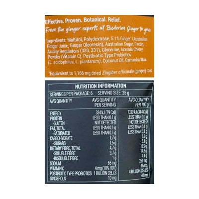 {"id":10152246968616,"title":"Buderim Ginger BioActive+ Gummie Bears 150g","handle":"buderim-ginger-bioactive-gummie-bears-150g","description":"\u003cp\u003eDiscover the remarkable benefits of Buderim’s finest Ginger with these soothing, yet fiery Ginger Bear Gummies. Our Bioactive Ginger+ Gummies naturally contain scientifically validated levels of Gingerols. These Gingerols sooth the stomach, relive nausea and provide the zing in your day. Our Bioactive Gingerols are complemented with symbiotic nutrients:\u003c\/p\u003e\n\u003cul\u003e\n\u003cli\u003eAustralia Ginger Juice\u003c\/li\u003e\n\u003cli\u003eDietary Fibre\u003c\/li\u003e\n\u003cli\u003ePlant Derived Vitamin C from Acerola Cherry\u003c\/li\u003e\n\u003cli\u003ePostbiotic Type Probiotics\u003c\/li\u003e\n\u003c\/ul\u003e\n\u003cp\u003e\u003cstrong\u003eGingerols\u003c\/strong\u003e\u003cspan\u003e \u003c\/span\u003efrom\u003cspan\u003e \u003c\/span\u003e\u003cem\u003eZingiber officinale\u003c\/em\u003e\u003cspan\u003e \u003c\/span\u003efor effective stomach soothing and nausea relief.\u003c\/p\u003e\n\u003cp\u003e\u003cstrong\u003eVitamin C\u003c\/strong\u003e\u003cspan\u003e \u003c\/span\u003econtributes to normal immune system function, energy metabolism and reduction of tiredness \u0026amp; fatigue.\u003c\/p\u003e\n\u003cp\u003e\u003cstrong\u003ePrebiotics and Postbiotics\u003c\/strong\u003e\u003cspan\u003e \u003c\/span\u003efor a healthier gut microbiome.\u003c\/p\u003e\n\u003ch5\u003eReviews\u003c\/h5\u003e\n\u003cp\u003eReviews go here\u003c\/p\u003e\n\u003ch5\u003eIngredients\u003c\/h5\u003e\n\u003cp\u003eAny images, tags, filters, product categories, and any other information on this website showing ingredients, nutrition panels, or allergy statements are for guidance only, as manufacturers often change their formulations without notice. Please contact the manufacturer for the most up-to-date ingredient information, or email us to confirm the ingredients of the stock currently on hand.\u003c\/p\u003e","published_at":"2026-02-13T14:30:52+11:00","created_at":"2026-02-13T14:30:51+11:00","vendor":"Buderim Ginger","type":"","tags":["Sweets","Sydney Store","Travel"],"price":1350,"price_min":1350,"price_max":1350,"available":true,"price_varies":false,"compare_at_price":null,"compare_at_price_min":0,"compare_at_price_max":0,"compare_at_price_varies":false,"variants":[{"id":51425788854568,"title":"Default Title","option1":"Default Title","option2":null,"option3":null,"sku":"9310371120407","requires_shipping":true,"taxable":true,"featured_image":null,"available":true,"name":"Buderim Ginger BioActive+ Gummie Bears 150g","public_title":null,"options":["Default Title"],"price":1350,"weight":150,"compare_at_price":null,"inventory_quantity":3,"inventory_management":"shopify","inventory_policy":"deny","barcode":null,"requires_selling_plan":false,"selling_plan_allocations":[]}],"images":["\/\/www.vegangrocerystore.com.au\/cdn\/shop\/files\/BGR110.png?v=1770953455","\/\/www.vegangrocerystore.com.au\/cdn\/shop\/files\/BuderimGinger-NutritionalInformation.jpg?v=1771393838"],"featured_image":"\/\/www.vegangrocerystore.com.au\/cdn\/shop\/files\/BGR110.png?v=1770953455","options":["Title"],"media":[{"alt":null,"id":43465451700520,"position":1,"preview_image":{"aspect_ratio":1.0,"height":1200,"width":1200,"src":"\/\/www.vegangrocerystore.com.au\/cdn\/shop\/files\/BGR110.png?v=1770953455"},"aspect_ratio":1.0,"height":1200,"media_type":"image","src":"\/\/www.vegangrocerystore.com.au\/cdn\/shop\/files\/BGR110.png?v=1770953455","width":1200},{"alt":null,"id":43503308439848,"position":2,"preview_image":{"aspect_ratio":1.0,"height":400,"width":400,"src":"\/\/www.vegangrocerystore.com.au\/cdn\/shop\/files\/BuderimGinger-NutritionalInformation.jpg?v=1771393838"},"aspect_ratio":1.0,"height":400,"media_type":"image","src":"\/\/www.vegangrocerystore.com.au\/cdn\/shop\/files\/BuderimGinger-NutritionalInformation.jpg?v=1771393838","width":400}],"requires_selling_plan":false,"selling_plan_groups":[],"content":"\u003cp\u003eDiscover the remarkable benefits of Buderim’s finest Ginger with these soothing, yet fiery Ginger Bear Gummies. Our Bioactive Ginger+ Gummies naturally contain scientifically validated levels of Gingerols. These Gingerols sooth the stomach, relive nausea and provide the zing in your day. Our Bioactive Gingerols are complemented with symbiotic nutrients:\u003c\/p\u003e\n\u003cul\u003e\n\u003cli\u003eAustralia Ginger Juice\u003c\/li\u003e\n\u003cli\u003eDietary Fibre\u003c\/li\u003e\n\u003cli\u003ePlant Derived Vitamin C from Acerola Cherry\u003c\/li\u003e\n\u003cli\u003ePostbiotic Type Probiotics\u003c\/li\u003e\n\u003c\/ul\u003e\n\u003cp\u003e\u003cstrong\u003eGingerols\u003c\/strong\u003e\u003cspan\u003e \u003c\/span\u003efrom\u003cspan\u003e \u003c\/span\u003e\u003cem\u003eZingiber officinale\u003c\/em\u003e\u003cspan\u003e \u003c\/span\u003efor effective stomach soothing and nausea relief.\u003c\/p\u003e\n\u003cp\u003e\u003cstrong\u003eVitamin C\u003c\/strong\u003e\u003cspan\u003e \u003c\/span\u003econtributes to normal immune system function, energy metabolism and reduction of tiredness \u0026amp; fatigue.\u003c\/p\u003e\n\u003cp\u003e\u003cstrong\u003ePrebiotics and Postbiotics\u003c\/strong\u003e\u003cspan\u003e \u003c\/span\u003efor a healthier gut microbiome.\u003c\/p\u003e\n\u003ch5\u003eReviews\u003c\/h5\u003e\n\u003cp\u003eReviews go here\u003c\/p\u003e\n\u003ch5\u003eIngredients\u003c\/h5\u003e\n\u003cp\u003eAny images, tags, filters, product categories, and any other information on this website showing ingredients, nutrition panels, or allergy statements are for guidance only, as manufacturers often change their formulations without notice. Please contact the manufacturer for the most up-to-date ingredient information, or email us to confirm the ingredients of the stock currently on hand.\u003c\/p\u003e"}