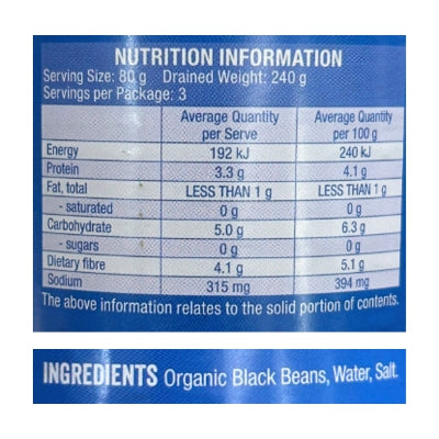 Chefs Choice Organic Beans - Black Beans in Water Canned 400g
