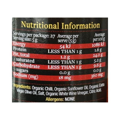 {"id":9486841315624,"title":"Chefs Choice Organic Calabrian Crushed Chillies - Extra Hot 135g","handle":"chefs-choice-organic-calabrian-crushed-chillies-extra-hot-135g","description":"\u003cp\u003e \u003c\/p\u003e\n\u003ch5\u003eReviews\u003c\/h5\u003e\n\u003cp\u003eReviews go here\u003c\/p\u003e\n\u003ch5\u003eIngredients\u003c\/h5\u003e\n\u003cp\u003eAny images, tags, filters, product categories, and any other information on this website showing ingredients, nutrition panels, or allergy statements are for guidance only, as manufacturers often change their formulations without notice. Please contact the manufacturer for the most up-to-date ingredient information, or email us to confirm the ingredients of the stock currently on hand.\u003c\/p\u003e","published_at":"2025-03-05T13:32:37+11:00","created_at":"2024-11-07T14:01:26+11:00","vendor":"Chef's Choice","type":"General","tags":["Cooking Sauces","Herbs \u0026 Spices","Sydney Store"],"price":819,"price_min":819,"price_max":819,"available":true,"price_varies":false,"compare_at_price":null,"compare_at_price_min":0,"compare_at_price_max":0,"compare_at_price_varies":false,"variants":[{"id":49486833385768,"title":"Default Title","option1":"Default Title","option2":null,"option3":null,"sku":"9339337304491","requires_shipping":true,"taxable":false,"featured_image":null,"available":true,"name":"Chefs Choice Organic Calabrian Crushed Chillies - Extra Hot 135g","public_title":null,"options":["Default Title"],"price":819,"weight":135,"compare_at_price":null,"inventory_quantity":1,"inventory_management":"shopify","inventory_policy":"deny","barcode":null,"requires_selling_plan":false,"selling_plan_allocations":[]}],"images":["\/\/www.vegangrocerystore.com.au\/cdn\/shop\/files\/Certified-Organic-Calabrian-Crushed-Chillies-extra-hot.jpg?v=1730948486","\/\/www.vegangrocerystore.com.au\/cdn\/shop\/files\/ChefsChoiceCalabrianChilliesExtraHot-NutritionalInformation.jpg?v=1764804561"],"featured_image":"\/\/www.vegangrocerystore.com.au\/cdn\/shop\/files\/Certified-Organic-Calabrian-Crushed-Chillies-extra-hot.jpg?v=1730948486","options":["Title"],"media":[{"alt":null,"id":40433527488808,"position":1,"preview_image":{"aspect_ratio":1.0,"height":800,"width":800,"src":"\/\/www.vegangrocerystore.com.au\/cdn\/shop\/files\/Certified-Organic-Calabrian-Crushed-Chillies-extra-hot.jpg?v=1730948486"},"aspect_ratio":1.0,"height":800,"media_type":"image","src":"\/\/www.vegangrocerystore.com.au\/cdn\/shop\/files\/Certified-Organic-Calabrian-Crushed-Chillies-extra-hot.jpg?v=1730948486","width":800},{"alt":null,"id":43126980935976,"position":2,"preview_image":{"aspect_ratio":1.0,"height":400,"width":400,"src":"\/\/www.vegangrocerystore.com.au\/cdn\/shop\/files\/ChefsChoiceCalabrianChilliesExtraHot-NutritionalInformation.jpg?v=1764804561"},"aspect_ratio":1.0,"height":400,"media_type":"image","src":"\/\/www.vegangrocerystore.com.au\/cdn\/shop\/files\/ChefsChoiceCalabrianChilliesExtraHot-NutritionalInformation.jpg?v=1764804561","width":400}],"requires_selling_plan":false,"selling_plan_groups":[],"content":"\u003cp\u003e \u003c\/p\u003e\n\u003ch5\u003eReviews\u003c\/h5\u003e\n\u003cp\u003eReviews go here\u003c\/p\u003e\n\u003ch5\u003eIngredients\u003c\/h5\u003e\n\u003cp\u003eAny images, tags, filters, product categories, and any other information on this website showing ingredients, nutrition panels, or allergy statements are for guidance only, as manufacturers often change their formulations without notice. Please contact the manufacturer for the most up-to-date ingredient information, or email us to confirm the ingredients of the stock currently on hand.\u003c\/p\u003e"}