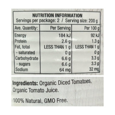 {"id":9486852653352,"title":"Chefs Choice Organic Tomatoes - Diced Canned 400g","handle":"chefs-choice-organic-tomatoes-diced-canned-400g","description":"\u003cp\u003e \u003c\/p\u003e\n\u003ch5\u003eReviews\u003c\/h5\u003e\n\u003cp\u003eReviews go here\u003c\/p\u003e\n\u003ch5\u003eIngredients\u003c\/h5\u003e\n\u003cp\u003eAny images, tags, filters, product categories, and any other information on this website showing ingredients, nutrition panels, or allergy statements are for guidance only, as manufacturers often change their formulations without notice. Please contact the manufacturer for the most up-to-date ingredient information, or email us to confirm the ingredients of the stock currently on hand.\u003c\/p\u003e","published_at":"2025-11-19T11:22:38+11:00","created_at":"2024-11-07T14:49:12+11:00","vendor":"Chef's Choice","type":"General","tags":["Cooking Sauces","Sydney Store"],"price":248,"price_min":248,"price_max":248,"available":true,"price_varies":false,"compare_at_price":null,"compare_at_price_min":0,"compare_at_price_max":0,"compare_at_price_varies":false,"variants":[{"id":49486908260648,"title":"Default Title","option1":"Default Title","option2":null,"option3":null,"sku":"9339337004704","requires_shipping":true,"taxable":false,"featured_image":null,"available":true,"name":"Chefs Choice Organic Tomatoes - Diced Canned 400g","public_title":null,"options":["Default Title"],"price":248,"weight":400,"compare_at_price":null,"inventory_quantity":1,"inventory_management":"shopify","inventory_policy":"deny","barcode":null,"requires_selling_plan":false,"selling_plan_allocations":[]}],"images":["\/\/www.vegangrocerystore.com.au\/cdn\/shop\/files\/Certified-Organic-Diced-Tomatoes-400g.jpg?v=1730951352","\/\/www.vegangrocerystore.com.au\/cdn\/shop\/files\/Chef_sChoiceDicedTomatoes-NutritionalInformation.jpg?v=1764811315"],"featured_image":"\/\/www.vegangrocerystore.com.au\/cdn\/shop\/files\/Certified-Organic-Diced-Tomatoes-400g.jpg?v=1730951352","options":["Title"],"media":[{"alt":null,"id":40433648959784,"position":1,"preview_image":{"aspect_ratio":1.0,"height":800,"width":800,"src":"\/\/www.vegangrocerystore.com.au\/cdn\/shop\/files\/Certified-Organic-Diced-Tomatoes-400g.jpg?v=1730951352"},"aspect_ratio":1.0,"height":800,"media_type":"image","src":"\/\/www.vegangrocerystore.com.au\/cdn\/shop\/files\/Certified-Organic-Diced-Tomatoes-400g.jpg?v=1730951352","width":800},{"alt":null,"id":43127190192424,"position":2,"preview_image":{"aspect_ratio":1.0,"height":400,"width":400,"src":"\/\/www.vegangrocerystore.com.au\/cdn\/shop\/files\/Chef_sChoiceDicedTomatoes-NutritionalInformation.jpg?v=1764811315"},"aspect_ratio":1.0,"height":400,"media_type":"image","src":"\/\/www.vegangrocerystore.com.au\/cdn\/shop\/files\/Chef_sChoiceDicedTomatoes-NutritionalInformation.jpg?v=1764811315","width":400}],"requires_selling_plan":false,"selling_plan_groups":[],"content":"\u003cp\u003e \u003c\/p\u003e\n\u003ch5\u003eReviews\u003c\/h5\u003e\n\u003cp\u003eReviews go here\u003c\/p\u003e\n\u003ch5\u003eIngredients\u003c\/h5\u003e\n\u003cp\u003eAny images, tags, filters, product categories, and any other information on this website showing ingredients, nutrition panels, or allergy statements are for guidance only, as manufacturers often change their formulations without notice. Please contact the manufacturer for the most up-to-date ingredient information, or email us to confirm the ingredients of the stock currently on hand.\u003c\/p\u003e"}
