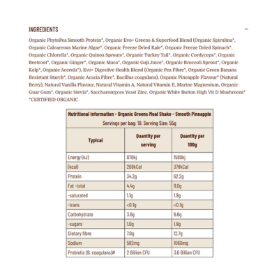 {"id":9874467356968,"title":"Evolution Botanicals Organic Greens Meal Shake - Pineapple 550g","handle":"evolution-botanicals-organic-greens-meal-shake-pineapple-550g","description":"\u003cp\u003e \u003c\/p\u003e\n\u003ch5\u003eReviews\u003c\/h5\u003e\n\u003cp\u003eReviews go here\u003c\/p\u003e\n\u003ch5\u003eIngredients\u003c\/h5\u003e\n\u003cp\u003eAny images, tags, filters, product categories, and any other information on this website showing ingredients, nutrition panels, or allergy statements are for guidance only, as manufacturers often change their formulations without notice. Please contact the manufacturer for the most up-to-date ingredient information, or email us to confirm the ingredients of the stock currently on hand.\u003c\/p\u003e","published_at":"2025-11-05T14:21:44+11:00","created_at":"2025-11-05T14:21:44+11:00","vendor":"Evolution Botanicals","type":"","tags":["Health Food","Instant Meals","Protein Powders","Sydney Store"],"price":4995,"price_min":4995,"price_max":4995,"available":true,"price_varies":false,"compare_at_price":null,"compare_at_price_min":0,"compare_at_price_max":0,"compare_at_price_varies":false,"variants":[{"id":50895982297384,"title":"Default Title","option1":"Default Title","option2":null,"option3":null,"sku":"9309000407392","requires_shipping":true,"taxable":true,"featured_image":null,"available":true,"name":"Evolution Botanicals Organic Greens Meal Shake - Pineapple 550g","public_title":null,"options":["Default Title"],"price":4995,"weight":0,"compare_at_price":null,"inventory_quantity":3,"inventory_management":"shopify","inventory_policy":"deny","barcode":null,"requires_selling_plan":false,"selling_plan_allocations":[]}],"images":["\/\/www.vegangrocerystore.com.au\/cdn\/shop\/files\/EVO_GreenMealShake_SmoothPineapple_Front4.20.59pm.webp?v=1763505085","\/\/www.vegangrocerystore.com.au\/cdn\/shop\/files\/evolutionpineapple-NutritionalInfo.png?v=1764196005","\/\/www.vegangrocerystore.com.au\/cdn\/shop\/files\/evolutionpineapple-AdditionalNutritionalInfo.png?v=1764196005"],"featured_image":"\/\/www.vegangrocerystore.com.au\/cdn\/shop\/files\/EVO_GreenMealShake_SmoothPineapple_Front4.20.59pm.webp?v=1763505085","options":["Title"],"media":[{"alt":null,"id":43006269849896,"position":1,"preview_image":{"aspect_ratio":1.0,"height":1946,"width":1946,"src":"\/\/www.vegangrocerystore.com.au\/cdn\/shop\/files\/EVO_GreenMealShake_SmoothPineapple_Front4.20.59pm.webp?v=1763505085"},"aspect_ratio":1.0,"height":1946,"media_type":"image","src":"\/\/www.vegangrocerystore.com.au\/cdn\/shop\/files\/EVO_GreenMealShake_SmoothPineapple_Front4.20.59pm.webp?v=1763505085","width":1946},{"alt":null,"id":43090687459624,"position":2,"preview_image":{"aspect_ratio":1.0,"height":400,"width":400,"src":"\/\/www.vegangrocerystore.com.au\/cdn\/shop\/files\/evolutionpineapple-NutritionalInfo.png?v=1764196005"},"aspect_ratio":1.0,"height":400,"media_type":"image","src":"\/\/www.vegangrocerystore.com.au\/cdn\/shop\/files\/evolutionpineapple-NutritionalInfo.png?v=1764196005","width":400},{"alt":null,"id":43090687426856,"position":3,"preview_image":{"aspect_ratio":1.0,"height":400,"width":400,"src":"\/\/www.vegangrocerystore.com.au\/cdn\/shop\/files\/evolutionpineapple-AdditionalNutritionalInfo.png?v=1764196005"},"aspect_ratio":1.0,"height":400,"media_type":"image","src":"\/\/www.vegangrocerystore.com.au\/cdn\/shop\/files\/evolutionpineapple-AdditionalNutritionalInfo.png?v=1764196005","width":400}],"requires_selling_plan":false,"selling_plan_groups":[],"content":"\u003cp\u003e \u003c\/p\u003e\n\u003ch5\u003eReviews\u003c\/h5\u003e\n\u003cp\u003eReviews go here\u003c\/p\u003e\n\u003ch5\u003eIngredients\u003c\/h5\u003e\n\u003cp\u003eAny images, tags, filters, product categories, and any other information on this website showing ingredients, nutrition panels, or allergy statements are for guidance only, as manufacturers often change their formulations without notice. Please contact the manufacturer for the most up-to-date ingredient information, or email us to confirm the ingredients of the stock currently on hand.\u003c\/p\u003e"}