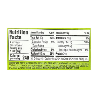 {"id":5525289009309,"title":"Field Roast Sausages Apple Sage 368g (cold)","handle":"field-roast-smoked-apple-sage-sausages-368g-cold","description":"\u003cp\u003e\u003cspan style=\"box-sizing: border-box; margin: 0px; padding: 0px; font-weight: bold;\"\u003e\u003c\/span\u003e\u003cstrong\u003e\u003c\/strong\u003eFrom our family to yours! Field Roast sausages are made using traditional, old-country, sausage making practices.\u003c\/p\u003e\n\u003cp\u003eSmoked Apple Sage – a savory combination of apples and sage anchored with yukon gold potatoes with a subtle hint of hickory smoke.\u003c\/p\u003e\n\u003c!-- TABS --\u003e\n\u003ch5\u003eReviews\u003c\/h5\u003e\n\u003cp\u003eReviews go here\u003c\/p\u003e\n\u003ch5\u003eIngredients\u003c\/h5\u003e\n\u003cp\u003eAny images, tags, filters, product categories, and any other information on this website showing ingredients, nutrition panels, or allergy statements are for guidance only, as manufacturers often change their formulations without notice. Please contact the manufacturer for the most up-to-date ingredient information, or email us to confirm the ingredients of the stock currently on hand.\u003c\/p\u003e\n\u003ch5\u003eImportant Shipping Note\u003c\/h5\u003e\n\u003cdiv\u003e\n\u003cspan\u003eAll orders containing chilled products, frozen products and chocolates must include a Cooler to protect them in transit. The\u003c\/span\u003e\u003cspan\u003e \u003c\/span\u003e\u003cspan\u003eCooler\u003c\/span\u003e\u003cspan\u003e will automatically add to your order when a cold product is added to your shopping cart. \u003c\/span\u003e\u003cspan\u003eFrozen items may defrost in transit, we can not recommend re-freezing. \u003c\/span\u003e\u003cspan\u003eWe will select the correct size cooler for your order. Chilled orders can only be sent to certain areas, please refer to our \u003c\/span\u003e\u003ca href=\"https:\/\/www.crueltyfreeshop.com.au\/pages\/faq#refrid\" rel=\"noopener\" target=\"_blank\" data-saferedirecturl=\"https:\/\/www.google.com\/url?q=https:\/\/www.crueltyfreeshop.com.au\/pages\/faq%23refrid\u0026amp;source=gmail\u0026amp;ust=1664430462005000\u0026amp;usg=AOvVaw3YpBIvhTwoxQRA_PVqbP_L\"\u003eFAQ\u003c\/a\u003e\u003cspan\u003e or email us at \u003c\/span\u003e\u003ca href=\"mailto:online@vegangrocerystore.com.au\" rel=\"noopener\" target=\"_blank\"\u003eonline@vegangrocerystore.\u003cwbr\u003ecom.au\u003c\/wbr\u003e\u003c\/a\u003e\n\u003c\/div\u003e","published_at":"2023-10-12T14:22:58+11:00","created_at":"2020-08-20T08:50:54+10:00","vendor":"Field roast","type":"Refrig food (GST Free)","tags":["Sausages","Sydney Store"],"price":1416,"price_min":1416,"price_max":1416,"available":true,"price_varies":false,"compare_at_price":null,"compare_at_price_min":0,"compare_at_price_max":0,"compare_at_price_varies":false,"variants":[{"id":35763968770205,"title":"Default Title","option1":"Default Title","option2":null,"option3":null,"sku":"638031612178","requires_shipping":true,"taxable":false,"featured_image":null,"available":true,"name":"Field Roast Sausages Apple Sage 368g (cold)","public_title":null,"options":["Default Title"],"price":1416,"weight":0,"compare_at_price":null,"inventory_quantity":6,"inventory_management":"shopify","inventory_policy":"deny","barcode":"","requires_selling_plan":false,"selling_plan_allocations":[]}],"images":["\/\/www.vegangrocerystore.com.au\/cdn\/shop\/files\/Product_Sausage_SmokedAppleSage_US_Left.png?v=1695174017","\/\/www.vegangrocerystore.com.au\/cdn\/shop\/files\/applesage-NutritionalInfo_ec09fc26-a281-4115-9f1e-4e7d14c4a184.jpg?v=1763695128"],"featured_image":"\/\/www.vegangrocerystore.com.au\/cdn\/shop\/files\/Product_Sausage_SmokedAppleSage_US_Left.png?v=1695174017","options":["Title"],"media":[{"alt":null,"id":36361114091816,"position":1,"preview_image":{"aspect_ratio":1.0,"height":1100,"width":1100,"src":"\/\/www.vegangrocerystore.com.au\/cdn\/shop\/files\/Product_Sausage_SmokedAppleSage_US_Left.png?v=1695174017"},"aspect_ratio":1.0,"height":1100,"media_type":"image","src":"\/\/www.vegangrocerystore.com.au\/cdn\/shop\/files\/Product_Sausage_SmokedAppleSage_US_Left.png?v=1695174017","width":1100},{"alt":null,"id":43021549797672,"position":2,"preview_image":{"aspect_ratio":1.0,"height":400,"width":400,"src":"\/\/www.vegangrocerystore.com.au\/cdn\/shop\/files\/applesage-NutritionalInfo_ec09fc26-a281-4115-9f1e-4e7d14c4a184.jpg?v=1763695128"},"aspect_ratio":1.0,"height":400,"media_type":"image","src":"\/\/www.vegangrocerystore.com.au\/cdn\/shop\/files\/applesage-NutritionalInfo_ec09fc26-a281-4115-9f1e-4e7d14c4a184.jpg?v=1763695128","width":400}],"requires_selling_plan":false,"selling_plan_groups":[],"content":"\u003cp\u003e\u003cspan style=\"box-sizing: border-box; margin: 0px; padding: 0px; font-weight: bold;\"\u003e\u003c\/span\u003e\u003cstrong\u003e\u003c\/strong\u003eFrom our family to yours! Field Roast sausages are made using traditional, old-country, sausage making practices.\u003c\/p\u003e\n\u003cp\u003eSmoked Apple Sage – a savory combination of apples and sage anchored with yukon gold potatoes with a subtle hint of hickory smoke.\u003c\/p\u003e\n\u003c!-- TABS --\u003e\n\u003ch5\u003eReviews\u003c\/h5\u003e\n\u003cp\u003eReviews go here\u003c\/p\u003e\n\u003ch5\u003eIngredients\u003c\/h5\u003e\n\u003cp\u003eAny images, tags, filters, product categories, and any other information on this website showing ingredients, nutrition panels, or allergy statements are for guidance only, as manufacturers often change their formulations without notice. Please contact the manufacturer for the most up-to-date ingredient information, or email us to confirm the ingredients of the stock currently on hand.\u003c\/p\u003e\n\u003ch5\u003eImportant Shipping Note\u003c\/h5\u003e\n\u003cdiv\u003e\n\u003cspan\u003eAll orders containing chilled products, frozen products and chocolates must include a Cooler to protect them in transit. The\u003c\/span\u003e\u003cspan\u003e \u003c\/span\u003e\u003cspan\u003eCooler\u0