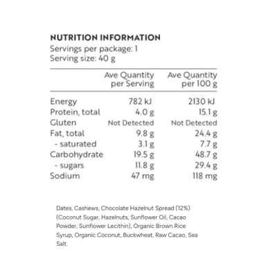{"id":9917202366760,"title":"Health Lab Holy Hazelnut 40g","handle":"health-lab-holy-hazelnut-40g","description":"\u003cp\u003e \u003c\/p\u003e\n\u003ch5\u003eReviews\u003c\/h5\u003e\n\u003cp\u003eReviews go here\u003c\/p\u003e\n\u003ch5\u003eIngredients\u003c\/h5\u003e\n\u003cp\u003eAny images, tags, filters, product categories, and any other information on this website showing ingredients, nutrition panels, or allergy statements are for guidance only, as manufacturers often change their formulations without notice. Please contact the manufacturer for the most up-to-date ingredient information, or email us to confirm the ingredients of the stock currently on hand.\u003c\/p\u003e\n\u003cdiv class=\"collapsibles-wrapper collapsibles-wrapper--border-bottom\"\u003e\u003cform class=\"contact-form\" id=\"contact-6620587622494-6620587622494\" action=\"https:\/\/www.veganperfection.com.au\/contact#contact-6620587622494-6620587622494\" method=\"post\"\u003e\u003c\/form\u003e\u003c\/div\u003e\n\u003ch5\u003eImportant Shipping Note\u003c\/h5\u003e\n\u003cdiv\u003e\n\u003cspan\u003eAll orders containing chilled products, frozen products and chocolates must include a Cooler to protect them in transit. The\u003c\/span\u003e\u003cspan\u003e \u003c\/span\u003e\u003cspan\u003eCooler\u003c\/span\u003e\u003cspan\u003e will automatically add to your order when a cold product is added to your shopping cart. \u003c\/span\u003e\u003cspan\u003eFrozen items may defrost in transit, we can not recommend re-freezing. \u003c\/span\u003e\u003cspan\u003eWe will select the correct size cooler for your order. Chilled orders can only be sent to certain areas, please refer to our \u003c\/span\u003e\u003ca data-saferedirecturl=\"https:\/\/www.google.com\/url?q=https:\/\/www.crueltyfreeshop.com.au\/pages\/faq%23refrid\u0026amp;source=gmail\u0026amp;ust=1664430462005000\u0026amp;usg=AOvVaw3YpBIvhTwoxQRA_PVqbP_L\" rel=\"noopener\" href=\"https:\/\/www.crueltyfreeshop.com.au\/pages\/faq#refrid\" target=\"_blank\"\u003eFAQ\u003c\/a\u003e\u003cspan\u003e or email us at \u003c\/span\u003e\u003ca rel=\"noopener\" href=\"mailto:online@vegangrocerystore.com.au\" target=\"_blank\"\u003eonline@vegangrocerystore.\u003cwbr\u003ecom.au\u003c\/wbr\u003e\u003c\/a\u003e\n\u003c\/div\u003e\n\u003c!-- \/TABS --\u003e","published_at":"2025-11-13T10:40:39+11:00","created_at":"2025-11-13T10:40:38+11:00","vendor":"Health Lab","type":"Food","tags":["Protein Bars","Sydney Store"],"price":375,"price_min":375,"price_max":375,"available":true,"price_varies":false,"compare_at_price":null,"compare_at_price_min":0,"compare_at_price_max":0,"compare_at_price_varies":false,"variants":[{"id":50955435737384,"title":"Default Title","option1":"Default Title","option2":null,"option3":null,"sku":"9349809001926","requires_shipping":true,"taxable":true,"featured_image":null,"available":true,"name":"Health Lab Holy Hazelnut 40g","public_title":null,"options":["Default Title"],"price":375,"weight":0,"compare_at_price":null,"inventory_quantity":11,"inventory_management":"shopify","inventory_policy":"deny","barcode":null,"requires_selling_plan":false,"selling_plan_allocations":[]}],"images":["\/\/www.vegangrocerystore.com.au\/cdn\/shop\/files\/image_bacdd46c-2e69-4bca-b9ba-1b4dfb61d1dd.jpg?v=1763773700","\/\/www.vegangrocerystore.com.au\/cdn\/shop\/files\/HealthLabHolyHazelnutBall-NutritionalInfo.png?v=1764194119"],"featured_image":"\/\/www.vegangrocerystore.com.au\/cdn\/shop\/files\/image_bacdd46c-2e69-4bca-b9ba-1b4dfb61d1dd.jpg?v=1763773700","options":["Title"],"media":[{"alt":null,"id":43027194577192,"position":1,"preview_image":{"aspect_ratio":1.0,"height":600,"width":600,"src":"\/\/www.vegangrocerystore.com.au\/cdn\/shop\/files\/image_bacdd46c-2e69-4bca-b9ba-1b4dfb61d1dd.jpg?v=1763773700"},"aspect_ratio":1.0,"height":600,"media_type":"image","src":"\/\/www.vegangrocerystore.com.au\/cdn\/shop\/files\/image_bacdd46c-2e69-4bca-b9ba-1b4dfb61d1dd.jpg?v=1763773700","width":600},{"alt":null,"id":43090615402792,"position":2,"preview_image":{"aspect_ratio":1.0,"height":400,"width":400,"src":"\/\/www.vegangrocerystore.com.au\/cdn\/shop\/files\/HealthLabHolyHazelnutBall-NutritionalInfo.png?v=1764194119"},"aspect_ratio":1.0,"height":400,"media_type":"image","src":"\/\/www.vegangrocerystore.com.au\/cdn\/shop\/files\/HealthLabHolyHazelnutBall-NutritionalInfo.png?v=1764194119","width":400}],"requires_selling_plan":false,"selling_plan_groups":[],"content":"\u003cp\u003e \u003c\/p\u003e\n\u003ch5\u003eReviews\u003c\/h5\u003e\n\u003cp\u003eReviews go here\u003c\/p\u003e\n\u003ch5\u003eIngredients\u003c\/h5\u003e\n\u003cp\u003eAny images, tags, filters, product categories, and any other information on this website showing ingredients, nutrition panels, or allergy statements are for guidance only, as manufacturers often change their formulations without notice. Please contact the manufacturer for the most up-to-date ingredient information, or email us to confirm the ingredients of the stock currently on hand.\u003c\/p\u003e\n\u003cdiv class=\"collapsibles-wrapper collapsibles-wrapper--border-bottom\"\u003e\u003cform class=\"contact-form\" id=\"contact-6620587622494-6620587622494\" action=\"https:\/\/www.veganperfection.com.au\/contact#contact-6620587622494-6620587622494\" method=\"post\"\u003e\u003c\/form\u003e\u003c\/div\u003e\n\u003ch5\u003eImportant Shipping Note\u003c\/h5\u003e\n\u003cdiv\u003e\n\u003cspan\u003eAll orders containing chilled products, frozen products and chocolates must include a Cooler to protect them in transit. The\u003c\/span\u003e\u003cspan\u003e \u003c\/span\u003e\u003cspan\u003eCooler\u003c\/span\u003e\u003cspan\u003e will automatically add to your order when a cold product is added to your shopping cart. \u003c\/span\u003e\u003cspan\u003eFrozen items may defrost in transit, we can not recommend re-freezing. \u003c\/span\u003e\u003cspan\u003eWe will select the correct size cooler for your order. Chilled orders can only be sent to certain areas, please refe