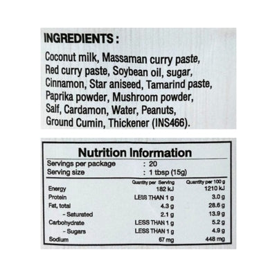 {"id":10156356403496,"title":"Healthy Thai Massaman Curry Sauce 300ml","handle":"healthy-thai-massaman-curry-sauce-300ml","description":"\u003cp data-start=\"47\" data-end=\"264\"\u003eEnjoy the rich, comforting flavours of Thailand with Healthy Thai Massaman Curry Sauce. With its blend of aromatic spices, mild heat, and subtle sweetness, this sauce creates a hearty and delicious curry in minutes.\u003c\/p\u003e\n\u003cp data-start=\"266\" data-end=\"491\"\u003eMade with quality ingredients and suitable for vegetarian diets, it’s perfect for simmering with vegetables, tofu, or your favourite plant-based protein. Simply add to a pan and enjoy a creamy, authentic Thai curry at home.\u003c\/p\u003e\n\u003ch5\u003eReviews\u003c\/h5\u003e\n\u003cp\u003eReviews go here\u003c\/p\u003e\n\u003ch5\u003eIngredients\u003c\/h5\u003e\n\u003cp\u003eAny images, tags, filters, product categories, and any other information on this website showing ingredients, nutrition panels, or allergy statements are for guidance only, as manufacturers often change their formulations without notice. Please contact the manufacturer for the most up-to-date ingredient information, or email us to confirm the ingredients of the stock currently on hand.\u003c\/p\u003e","published_at":"2026-02-15T17:14:26+11:00","created_at":"2026-02-15T17:14:25+11:00","vendor":"Healthy Thai","type":"","tags":["Cooking Sauces","Savoury Sauces","Sydney Store"],"price":775,"price_min":775,"price_max":775,"available":true,"price_varies":false,"compare_at_price":null,"compare_at_price_min":0,"compare_at_price_max":0,"compare_at_price_varies":false,"variants":[{"id":51438007124264,"title":"Default Title","option1":"Default Title","option2":null,"option3":null,"sku":"Massamancurrysauce","requires_shipping":true,"taxable":false,"featured_image":null,"available":true,"name":"Healthy Thai Massaman Curry Sauce 300ml","public_title":null,"options":["Default Title"],"price":775,"weight":300,"compare_at_price":null,"inventory_quantity":12,"inventory_management":"shopify","inventory_policy":"deny","barcode":null,"requires_selling_plan":false,"selling_plan_allocations":[]}],"images":["\/\/www.vegangrocerystore.com.au\/cdn\/shop\/files\/136_794c4538-a02b-4ae6-85a3-00fcb660d5c6.png?v=1771136067","\/\/www.vegangrocerystore.com.au\/cdn\/shop\/files\/HealthyThaiSaucesMassamanSauce-NutritionalInformation.jpg?v=1771456098"],"featured_image":"\/\/www.vegangrocerystore.com.au\/cdn\/shop\/files\/136_794c4538-a02b-4ae6-85a3-00fcb660d5c6.png?v=1771136067","options":["Title"],"media":[{"alt":null,"id":43485707927848,"position":1,"preview_image":{"aspect_ratio":1.0,"height":400,"width":400,"src":"\/\/www.vegangrocerystore.com.au\/cdn\/shop\/files\/136_794c4538-a02b-4ae6-85a3-00fcb660d5c6.png?v=1771136067"},"aspect_ratio":1.0,"height":400,"media_type":"image","src":"\/\/www.vegangrocerystore.com.au\/cdn\/shop\/files\/136_794c4538-a02b-4ae6-85a3-00fcb660d5c6.png?v=1771136067","width":400},{"alt":null,"id":43514114375976,"position":2,"preview_image":{"aspect_ratio":1.0,"height":400,"width":400,"src":"\/\/www.vegangrocerystore.com.au\/cdn\/shop\/files\/HealthyThaiSaucesMassamanSauce-NutritionalInformation.jpg?v=1771456098"},"aspect_ratio":1.0,"height":400,"media_type":"image","src":"\/\/www.vegangrocerystore.com.au\/cdn\/shop\/files\/HealthyThaiSaucesMassamanSauce-NutritionalInformation.jpg?v=1771456098","width":400}],"requires_selling_plan":false,"selling_plan_groups":[],"content":"\u003cp data-start=\"47\" data-end=\"264\"\u003eEnjoy the rich, comforting flavours of Thailand with Healthy Thai Massaman Curry Sauce. With its blend of aromatic spices, mild heat, and subtle sweetness, this sauce creates a hearty and delicious curry in minutes.\u003c\/p\u003e\n\u003cp data-start=\"266\" data-end=\"491\"\u003eMade with quality ingredients and suitable for vegetarian diets, it’s perfect for simmering with vegetables, tofu, or your favourite plant-based protein. Simply add to a pan and enjoy a creamy, authentic Thai curry at home.\u003c\/p\u003e\n\u003ch5\u003eReviews\u003c\/h5\u003e\n\u003cp\u003eReviews go here\u003c\/p\u003e\n\u003ch5\u003eIngredients\u003c\/h5\u003e\n\u003cp\u003eAny images, tags, filters, product categories, and any other information on this website showing ingredients, nutrition panels, or allergy statements are for guidance only, as manufacturers often change their formulations without notice. Please contact the manufacturer for the most up-to-date ingredient information, or email us to confirm the ingredients of the stock currently on hand.\u003c\/p\u003e"}
