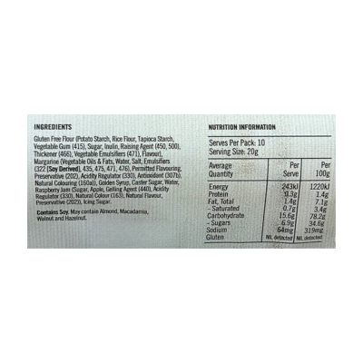{"id":9504722911528,"title":"House of Biskota Gluten Free - Daisy Kisses 200g","handle":"houseofbiskottadaisykisses220g","description":"\u003cp\u003eDaisy Kisses!\u003c\/p\u003e\n\u003cp\u003eThe perfect biscuit addition to your afternoon tea, these delicious biscuits are dusted with icing sugar and beautifully presented in the shape of two flowers sandwiched together with raspberry jam. \u003c\/p\u003e\n\u003ch5\u003eReviews\u003c\/h5\u003e\n\u003cp\u003eReviews go here\u003c\/p\u003e\n\u003ch5\u003eIngredients\u003c\/h5\u003e\n\u003cp\u003eAny images, tags, filters, product categories, and any other information on this website showing ingredients, nutrition panels, or allergy statements are for guidance only, as manufacturers often change their formulations without notice. Please contact the manufacturer for the most up-to-date ingredient information, or email us to confirm the ingredients of the stock currently on hand.\u003c\/p\u003e","published_at":"2025-07-16T15:03:55+10:00","created_at":"2024-11-28T15:28:16+11:00","vendor":"House of Biskota","type":"Food","tags":["Biscuits","Gluten Free","Sydney Store"],"price":899,"price_min":899,"price_max":899,"available":true,"price_varies":false,"compare_at_price":null,"compare_at_price_min":0,"compare_at_price_max":0,"compare_at_price_varies":false,"variants":[{"id":49568506609960,"title":"Default Title","option1":"Default Title","option2":null,"option3":null,"sku":"9336989000283","requires_shipping":true,"taxable":true,"featured_image":null,"available":true,"name":"House of Biskota Gluten Free - Daisy Kisses 200g","public_title":null,"options":["Default Title"],"price":899,"weight":0,"compare_at_price":null,"inventory_quantity":2,"inventory_management":"shopify","inventory_policy":"deny","barcode":null,"requires_selling_plan":false,"selling_plan_allocations":[]}],"images":["\/\/www.vegangrocerystore.com.au\/cdn\/shop\/files\/HBSK1120R-CTN.jpg?v=1732768096","\/\/www.vegangrocerystore.com.au\/cdn\/shop\/files\/BiskotaGFDaisyKisses-NutritionalInformation.png?v=1764305897"],"featured_image":"\/\/www.vegangrocerystore.com.au\/cdn\/shop\/files\/HBSK1120R-CTN.jpg?v=1732768096","options":["Title"],"media":[{"alt":null,"id":40570999505192,"position":1,"preview_image":{"aspect_ratio":1.0,"height":400,"width":400,"src":"\/\/www.vegangrocerystore.com.au\/cdn\/shop\/files\/HBSK1120R-CTN.jpg?v=1732768096"},"aspect_ratio":1.0,"height":400,"media_type":"image","src":"\/\/www.vegangrocerystore.com.au\/cdn\/shop\/files\/HBSK1120R-CTN.jpg?v=1732768096","width":400},{"alt":null,"id":43098894270760,"position":2,"preview_image":{"aspect_ratio":1.0,"height":400,"width":400,"src":"\/\/www.vegangrocerystore.com.au\/cdn\/shop\/files\/BiskotaGFDaisyKisses-NutritionalInformation.png?v=1764305897"},"aspect_ratio":1.0,"height":400,"media_type":"image","src":"\/\/www.vegangrocerystore.com.au\/cdn\/shop\/files\/BiskotaGFDaisyKisses-NutritionalInformation.png?v=1764305897","width":400}],"requires_selling_plan":false,"selling_plan_groups":[],"content":"\u003cp\u003eDaisy Kisses!\u003c\/p\u003e\n\u003cp\u003eThe perfect biscuit addition to your afternoon tea, these delicious biscuits are dusted with icing sugar and beautifully presented in the shape of two flowers sandwiched together with raspberry jam. \u003c\/p\u003e\n\u003ch5\u003eReviews\u003c\/h5\u003e\n\u003cp\u003eReviews go here\u003c\/p\u003e\n\u003ch5\u003eIngredients\u003c\/h5\u003e\n\u003cp\u003eAny images, tags, filters, product categories, and any other information on this website showing ingredients, nutrition panels, or allergy statements are for guidance only, as manufacturers often change their formulations without notice. Please contact the manufacturer for the most up-to-date ingredient information, or email us to confirm the ingredients of the stock currently on hand.\u003c\/p\u003e"}