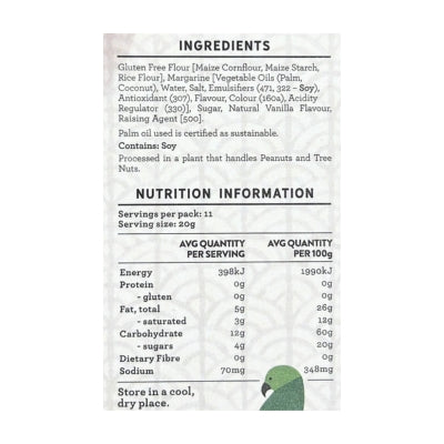 {"id":9847933468968,"title":"Kea Gluten Free Cookies - Vanilla 250g","handle":"kea-gluten-free-cookies-vanilla-250g","description":"\u003cp\u003eKea Cookies is a family business: for over 30 years, they have batch-baked \u003cspan\u003ea delicious selection of premium cookies based on traditional homestyle recipes.\u003c\/span\u003e\u003c\/p\u003e\n\u003ch5\u003eReviews\u003c\/h5\u003e\n\u003cp\u003eReviews go here\u003c\/p\u003e\n\u003ch5\u003eIngredients\u003c\/h5\u003e\n\u003cp\u003eAny images, tags, filters, product categories, and any other information on this website showing ingredients, nutrition panels, or allergy statements are for guidance only, as manufacturers often change their formulations without notice. Please contact the manufacturer for the most up-to-date ingredient information, or email us to confirm the ingredients of the stock currently on hand.\u003c\/p\u003e\n\u003c!-- TABS --\u003e\u003c!-- \/TABS --\u003e","published_at":"2025-10-11T12:53:25+11:00","created_at":"2025-10-11T12:53:24+11:00","vendor":"Kea Cookies","type":"Food","tags":["Biscuits","Gluten Free","Sydney Store"],"price":835,"price_min":835,"price_max":835,"available":true,"price_varies":false,"compare_at_price":null,"compare_at_price_min":0,"compare_at_price_max":0,"compare_at_price_varies":false,"variants":[{"id":50823906689320,"title":"Default Title","option1":"Default Title","option2":null,"option3":null,"sku":"9421900246229","requires_shipping":true,"taxable":true,"featured_image":null,"available":true,"name":"Kea Gluten Free Cookies - Vanilla 250g","public_title":null,"options":["Default Title"],"price":835,"weight":0,"compare_at_price":null,"inventory_quantity":1,"inventory_management":"shopify","inventory_policy":"deny","barcode":null,"requires_selling_plan":false,"selling_plan_allocations":[]}],"images":["\/\/www.vegangrocerystore.com.au\/cdn\/shop\/files\/kea-cookies-gluten-free-biscuits-vanilla-cookies.jpg?v=1763503856","\/\/www.vegangrocerystore.com.au\/cdn\/shop\/files\/KeaVanilla-NutritionalInformation.jpg?v=1764289412"],"featured_image":"\/\/www.vegangrocerystore.com.au\/cdn\/shop\/files\/kea-cookies-gluten-free-biscuits-vanilla-cookies.jpg?v=1763503856","options":["Title"],"media":[{"alt":null,"id":43006160339240,"position":1,"preview_image":{"aspect_ratio":1.0,"height":620,"width":620,"src":"\/\/www.vegangrocerystore.com.au\/cdn\/shop\/files\/kea-cookies-gluten-free-biscuits-vanilla-cookies.jpg?v=1763503856"},"aspect_ratio":1.0,"height":620,"media_type":"image","src":"\/\/www.vegangrocerystore.com.au\/cdn\/shop\/files\/kea-cookies-gluten-free-biscuits-vanilla-cookies.jpg?v=1763503856","width":620},{"alt":null,"id":43097655476520,"position":2,"preview_image":{"aspect_ratio":1.0,"height":400,"width":400,"src":"\/\/www.vegangrocerystore.com.au\/cdn\/shop\/files\/KeaVanilla-NutritionalInformation.jpg?v=1764289412"},"aspect_ratio":1.0,"height":400,"media_type":"image","src":"\/\/www.vegangrocerystore.com.au\/cdn\/shop\/files\/KeaVanilla-NutritionalInformation.jpg?v=1764289412","width":400}],"requires_selling_plan":false,"selling_plan_groups":[],"content":"\u003cp\u003eKea Cookies is a family business: for over 30 years, they have batch-baked \u003cspan\u003ea delicious selection of premium cookies based on traditional homestyle recipes.\u003c\/span\u003e\u003c\/p\u003e\n\u003ch5\u003eReviews\u003c\/h5\u003e\n\u003cp\u003eReviews go here\u003c\/p\u003e\n\u003ch5\u003eIngredients\u003c\/h5\u003e\n\u003cp\u003eAny images, tags, filters, product categories, and any other information on this website showing ingredients, nutrition panels, or allergy statements are for guidance only, as manufacturers often change their formulations without notice. Please contact the manufacturer for the most up-to-date ingredient information, or email us to confirm the ingredients of the stock currently on hand.\u003c\/p\u003e\n\u003c!-- TABS --\u003e\u003c!-- \/TABS --\u003e"}