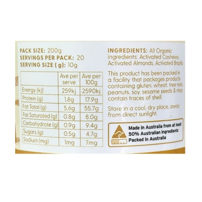 {"id":9841347100968,"title":"Live Wholefoods Organic Activated ABC Butter 200g","handle":"live-wholefoods-organic-activated-abc-butter-200g","description":"\u003cp\u003e \u003c\/p\u003e\n\u003ch5\u003eReviews\u003c\/h5\u003e\n\u003cp\u003eReviews go here\u003c\/p\u003e\n\u003ch5\u003eIngredients\u003c\/h5\u003e\n\u003cp\u003eAny images, tags, filters, product categories, and any other information on this website showing ingredients, nutrition panels, or allergy statements are for guidance only, as manufacturers often change their formulations without notice. Please contact the manufacturer for the most up-to-date ingredient information, or email us to confirm the ingredients of the stock currently on hand.\u003c\/p\u003e","published_at":"2025-10-02T11:12:25+10:00","created_at":"2025-10-02T11:12:24+10:00","vendor":"Live Wholefoods","type":"","tags":["Nuts","Savoury Spreads","Sweet Spreads","Sydney Store"],"price":1106,"price_min":1106,"price_max":1106,"available":true,"price_varies":false,"compare_at_price":null,"compare_at_price_min":0,"compare_at_price_max":0,"compare_at_price_varies":false,"variants":[{"id":50792797864232,"title":"Default Title","option1":"Default Title","option2":null,"option3":null,"sku":"9348082020891","requires_shipping":true,"taxable":false,"featured_image":null,"available":true,"name":"Live Wholefoods Organic Activated ABC Butter 200g","public_title":null,"options":["Default Title"],"price":1106,"weight":0,"compare_at_price":null,"inventory_quantity":4,"inventory_management":"shopify","inventory_policy":"deny","barcode":null,"requires_selling_plan":false,"selling_plan_allocations":[]}],"images":["\/\/www.vegangrocerystore.com.au\/cdn\/shop\/files\/LiveWholefoodsOrganicActivatedABCButter200g.png?v=1764741623","\/\/www.vegangrocerystore.com.au\/cdn\/shop\/files\/LIVEWHOLEFOODSABCBUTTER-NutritionalInformation.jpg?v=1764741623"],"featured_image":"\/\/www.vegangrocerystore.com.au\/cdn\/shop\/files\/LiveWholefoodsOrganicActivatedABCButter200g.png?v=1764741623","options":["Title"],"media":[{"alt":null,"id":43122801344808,"position":1,"preview_image":{"aspect_ratio":1.0,"height":800,"width":800,"src":"\/\/www.vegangrocerystore.com.au\/cdn\/shop\/files\/LiveWholefoodsOrganicActivatedABCButter200g.png?v=1764741623"},"aspect_ratio":1.0,"height":800,"media_type":"image","src":"\/\/www.vegangrocerystore.com.au\/cdn\/shop\/files\/LiveWholefoodsOrganicActivatedABCButter200g.png?v=1764741623","width":800},{"alt":null,"id":43112750383400,"position":2,"preview_image":{"aspect_ratio":1.0,"height":400,"width":400,"src":"\/\/www.vegangrocerystore.com.au\/cdn\/shop\/files\/LIVEWHOLEFOODSABCBUTTER-NutritionalInformation.jpg?v=1764741623"},"aspect_ratio":1.0,"height":400,"media_type":"image","src":"\/\/www.vegangrocerystore.com.au\/cdn\/shop\/files\/LIVEWHOLEFOODSABCBUTTER-NutritionalInformation.jpg?v=1764741623","width":400}],"requires_selling_plan":false,"selling_plan_groups":[],"content":"\u003cp\u003e \u003c\/p\u003e\n\u003ch5\u003eReviews\u003c\/h5\u003e\n\u003cp\u003eReviews go here\u003c\/p\u003e\n\u003ch5\u003eIngredients\u003c\/h5\u003e\n\u003cp\u003eAny images, tags, filters, product categories, and any other information on this website showing ingredients, nutrition panels, or allergy statements are for guidance only, as manufacturers often change their formulations without notice. Please contact the manufacturer for the most up-to-date ingredient information, or email us to confirm the ingredients of the stock currently on hand.\u003c\/p\u003e"}