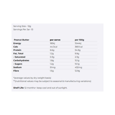 {"id":10011434680616,"title":"Macro Mike Powdered Peanut Butter - Sweet Original 156g","handle":"macromikepowderedpeanutbutter-sweetoriginal180g-case-1","description":"\u003cp\u003e\u003cstrong\u003e\u003c\/strong\u003e\u003cspan style=\"color: #333333; font-family: Arial, Helvetica, sans-serif; font-size: 14px; font-weight: bold;\"\u003e\u003c\/span\u003eOur PB+ is a must have for all the Peanut Butter addicts out there. PB+ is high in protein, low in fat, and comes in a range of delicious flavours. Our Original flavour combines the highest quality of plant powered protein with our signature roasted peanut flour. \u003c\/p\u003e\n\u003cp\u003eIf you love all things nutty, look no further, our Original PB+ is the perfect addition to all your favourite Macro Mike goodies. Add it to protein shakes, smoothie bowls, pancakes, waffles, granola and everything in-between. The possibilities are endless!\u003c\/p\u003e\n\u003cp\u003eTo make your PB+ simply add 1 serving to 20-25mls of water, and stir until desired consistency!\u003c\/p\u003e\n\u003cp\u003ePer 12g serving – 49 cal, 2.2 carbs, 6.3g protein, 1.2g fat.\u003c\/p\u003e\n\u003c!-- TABS --\u003e\n\u003ch5\u003eReviews\u003c\/h5\u003e\n\u003cp\u003eReviews go here\u003c\/p\u003e\n\u003ch5\u003eIngredients\u003c\/h5\u003e\n\u003cp\u003eAny images, tags, filters, product categories, and any other information on this website showing ingredients, nutrition panels, or allergy statements are for guidance only, as manufacturers often change their formulations without notice. Please contact the manufacturer for the most up-to-date ingredient information, or email us to confirm the ingredients of the stock currently on hand.\u003c\/p\u003e\n\u003c!-- \/TABS --\u003e","published_at":"2025-11-25T19:05:02+11:00","created_at":"2025-11-25T19:05:01+11:00","vendor":"Macro Mike","type":"Food (GST Free)","tags":["Protein Powders","Sydney Store"],"price":1495,"price_min":1495,"price_max":1495,"available":true,"price_varies":false,"compare_at_price":null,"compare_at_price_min":0,"compare_at_price_max":0,"compare_at_price_varies":false,"variants":[{"id":51091362578728,"title":"Default Title","option1":"Default Title","option2":null,"option3":null,"sku":"757953905929","requires_shipping":true,"taxable":false,"featured_image":null,"available":true,"name":"Macro Mike Powdered Peanut Butter - Sweet Original 156g","public_title":null,"options":["Default Title"],"price":1495,"weight":0,"compare_at_price":null,"inventory_quantity":6,"inventory_management":"shopify","inventory_policy":"deny","barcode":null,"requires_selling_plan":false,"selling_plan_allocations":[]}],"images":["\/\/www.vegangrocerystore.com.au\/cdn\/shop\/files\/86822a83baee0b4383031324837e6dd31bbc9d1f.jpg?v=1764057904","\/\/www.vegangrocerystore.com.au\/cdn\/shop\/files\/MacroMikepeanutbutter-NutritionalInfo.jpg?v=1764133419","\/\/www.vegangrocerystore.com.au\/cdn\/shop\/files\/MacroMikepeanutbutter-Ingredients.jpg?v=1764133419"],"featured_image":"\/\/www.vegangrocerystore.com.au\/cdn\/shop\/files\/86822a83baee0b4383031324837e6dd31bbc9d1f.jpg?v=1764057904","options":["Title"],"media":[{"alt":null,"id":43065900826920,"position":1,"preview_image":{"aspect_ratio":1.0,"height":1024,"width":1024,"src":"\/\/www.vegangrocerystore.com.au\/cdn\/shop\/files\/86822a83baee0b4383031324837e6dd31bbc9d1f.jpg?v=1764057904"},"aspect_ratio":1.0,"height":1024,"media_type":"image","src":"\/\/www.vegangrocerystore.com.au\/cdn\/shop\/files\/86822a83baee0b4383031324837e6dd31bbc9d1f.jpg?v=1764057904","width":1024},{"alt":null,"id":43078633783592,"position":2,"preview_image":{"aspect_ratio":1.0,"height":400,"width":400,"src":"\/\/www.vegangrocerystore.com.au\/cdn\/shop\/files\/MacroMikepeanutbutter-NutritionalInfo.jpg?v=1764133419"},"aspect_ratio":1.0,"height":400,"media_type":"image","src":"\/\/www.vegangrocerystore.com.au\/cdn\/shop\/files\/MacroMikepeanutbutter-NutritionalInfo.jpg?v=1764133419","width":400},{"alt":null,"id":43078633816360,"position":3,"preview_image":{"aspect_ratio":1.0,"height":400,"width":400,"src":"\/\/www.vegangrocerystore.com.au\/cdn\/shop\/files\/MacroMikepeanutbutter-Ingredients.jpg?v=1764133419"},"aspect_ratio":1.0,"height":400,"media_type":"image","src":"\/\/www.vegangrocerystore.com.au\/cdn\/shop\/files\/MacroMikepeanutbutter-Ingredients.jpg?v=1764133419","width":400}],"requires_selling_plan":false,"selling_plan_groups":[],"content":"\u003cp\u003e\u003cstrong\u003e\u003c\/strong\u003e\u003cspan style=\"color: #333333; font-family: Arial, Helvetica, sans-serif; font-size: 14px; font-weight: bold;\"\u003e\u003c\/span\u003eOur PB+ is a must have for all the Peanut Butter addicts out there. PB+ is high in protein, low in fat, and comes in a range of delicious flavours. Our Original flavour combines the highest quality of plant powered protein with our signature roasted peanut flour. \u003c\/p\u003e\n\u003cp\u003eIf you love all things nutty, look no further, our Original PB+ is the perfect addition to all your favourite Macro Mike goodies. Add it to protein shakes, smoothie bowls, pancakes, waffles, granola and everything in-between. The possibilities are endless!\u003c\/p\u003e\n\u003cp\u003eTo make your PB+ simply add 1 serving to 20-25mls of water, and stir until desired consistency!\u003c\/p\u003e\n\u003cp\u003ePer 12g serving – 49 cal, 2.2 carbs, 6.3g protein, 1.2g fat.\u003c\/p\u003e\n\u003c!-- TABS --\u003e\n\u003ch5\u003eReviews\u003c\/h5\u003e\n\u003cp\u003eReviews go here\u003c\/p\u003e\n\u003ch5\u003eIngredients\u003c\/h5\u003e\n\u003cp\u003eAny images, tags, filters, product categories, and any other information on this website showing ingredients, nutrition panels, or allergy statements are for guidance only, as manufacturers often change their formulations without notice. Please contact the manufacturer for the most up-to-date ingredient information, or email us to confirm the ingredients of the stock currently on hand.\u003c\/p\u003e\n\u003c!-- \/TABS --\u003e"}