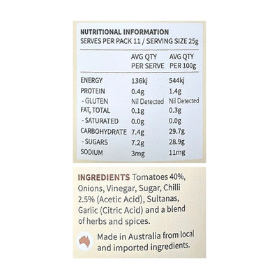 Maleny Cuisine Chutney - Spicy Tomato Relish 275g