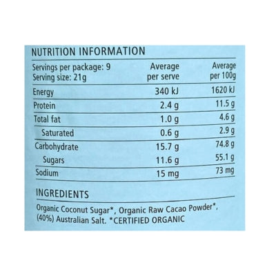 {"id":10141791453480,"title":"Nib \u0026 Noble Organic Drinking Chocolate - 40% Cacao 200g","handle":"nib-noble-organic-drinking-chocolate-40-cacao-200g","description":"\u003cp\u003eNib and Noble celebrates the cacao pod with our premium range of chocolate products. We use only organic and fair trade ingredients, blending raw cacao powder with unrefined coconut sugar for the perfect balance of flavour.\u003c\/p\u003e\n\u003cp\u003eOur 40% Cacao Organic Drinking Chocolate is for those who desire a rich yet naturally sweeter hot chocolate.\u003c\/p\u003e\n\u003cp\u003ePerfectly used as a substitute for cacao\/cocoa in recipes, making a chocolate sauce or using in smoothies and baking.\u003c\/p\u003e\n\u003ch5\u003eReviews\u003c\/h5\u003e\n\u003cp\u003eReviews go here\u003c\/p\u003e\n\u003ch5\u003eIngredients\u003c\/h5\u003e\n\u003cp\u003eAny images, tags, filters, product categories, and any other information on this website showing ingredients, nutrition panels, or allergy statements are for guidance only, as manufacturers often change their formulations without notice. Please contact the manufacturer for the most up-to-date ingredient information, or email us to confirm the ingredients of the stock currently on hand.\u003c\/p\u003e","published_at":"2026-02-04T15:21:31+11:00","created_at":"2026-02-04T15:21:31+11:00","vendor":"Nib \u0026 Noble","type":"","tags":["Beverages","Sydney Store"],"price":1335,"price_min":1335,"price_max":1335,"available":true,"price_varies":false,"compare_at_price":null,"compare_at_price_min":0,"compare_at_price_max":0,"compare_at_price_varies":false,"variants":[{"id":51396449239336,"title":"Default Title","option1":"Default Title","option2":null,"option3":null,"sku":"9356215000047","requires_shipping":true,"taxable":false,"featured_image":null,"available":true,"name":"Nib \u0026 Noble Organic Drinking Chocolate - 40% Cacao 200g","public_title":null,"options":["Default Title"],"price":1335,"weight":200,"compare_at_price":null,"inventory_quantity":3,"inventory_management":"shopify","inventory_policy":"deny","barcode":null,"requires_selling_plan":false,"selling_plan_allocations":[]}],"images":["\/\/www.vegangrocerystore.com.au\/cdn\/shop\/files\/Nib-Noble-40-Cocoa.jpg?v=1770178893","\/\/www.vegangrocerystore.com.au\/cdn\/shop\/files\/Nib_Noble40_-Nutrition.jpg?v=1771384256"],"featured_image":"\/\/www.vegangrocerystore.com.au\/cdn\/shop\/files\/Nib-Noble-40-Cocoa.jpg?v=1770178893","options":["Title"],"media":[{"alt":null,"id":43393606058280,"position":1,"preview_image":{"aspect_ratio":1.0,"height":400,"width":400,"src":"\/\/www.vegangrocerystore.com.au\/cdn\/shop\/files\/Nib-Noble-40-Cocoa.jpg?v=1770178893"},"aspect_ratio":1.0,"height":400,"media_type":"image","src":"\/\/www.vegangrocerystore.com.au\/cdn\/shop\/files\/Nib-Noble-40-Cocoa.jpg?v=1770178893","width":400},{"alt":null,"id":43497264349480,"position":2,"preview_image":{"aspect_ratio":1.0,"height":400,"width":400,"src":"\/\/www.vegangrocerystore.com.au\/cdn\/shop\/files\/Nib_Noble40_-Nutrition.jpg?v=1771384256"},"aspect_ratio":1.0,"height":400,"media_type":"image","src":"\/\/www.vegangrocerystore.com.au\/cdn\/shop\/files\/Nib_Noble40_-Nutrition.jpg?v=1771384256","width":400}],"requires_selling_plan":false,"selling_plan_groups":[],"content":"\u003cp\u003eNib and Noble celebrates the cacao pod with our premium range of chocolate products. We use only organic and fair trade ingredients, blending raw cacao powder with unrefined coconut sugar for the perfect balance of flavour.\u003c\/p\u003e\n\u003cp\u003eOur 40% Cacao Organic Drinking Chocolate is for those who desire a rich yet naturally sweeter hot chocolate.\u003c\/p\u003e\n\u003cp\u003ePerfectly used as a substitute for cacao\/cocoa in recipes, making a chocolate sauce or using in smoothies and baking.\u003c\/p\u003e\n\u003ch5\u003eReviews\u003c\/h5\u003e\n\u003cp\u003eReviews go here\u003c\/p\u003e\n\u003ch5\u003eIngredients\u003c\/h5\u003e\n\u003cp\u003eAny images, tags, filters, product categories, and any other information on this website showing ingredients, nutrition panels, or allergy statements are for guidance only, as manufacturers often change their formulations without notice. Please contact the manufacturer for the most up-to-date ingredient information, or email us to confirm the ingredients of the stock currently on hand.\u003c\/p\u003e"}