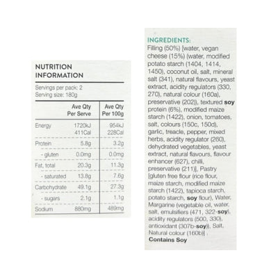 {"id":9428626309416,"title":"Pavillion Gluten Free Vegan Mince \u0026 Cheese Pies 360g (cold)","handle":"pavillion-gluten-free-vegan-mince-cheese-pies-360g","description":"\u003cp\u003e \u003c\/p\u003e\n\u003ch5\u003eReviews\u003c\/h5\u003e\n\u003cp\u003eReviews go here\u003c\/p\u003e\n\u003ch5\u003eIngredients\u003c\/h5\u003e\n\u003cp\u003eAny images, tags, filters, product categories, and any other information on this website showing ingredients, nutrition panels, or allergy statements are for guidance only, as manufacturers often change their formulations without notice. Please contact the manufacturer for the most up-to-date ingredient information, or email us to confirm the ingredients of the stock currently on hand.\u003c\/p\u003e","published_at":"2025-03-20T09:48:07+11:00","created_at":"2024-09-06T10:10:49+10:00","vendor":"Pavillion","type":"General","tags":["Pies","Sydney Store"],"price":1232,"price_min":1232,"price_max":1232,"available":false,"price_varies":false,"compare_at_price":null,"compare_at_price_min":0,"compare_at_price_max":0,"compare_at_price_varies":false,"variants":[{"id":49190287606056,"title":"Default Title","option1":"Default Title","option2":null,"option3":null,"sku":"9417808001060","requires_shipping":true,"taxable":true,"featured_image":null,"available":false,"name":"Pavillion Gluten Free Vegan Mince \u0026 Cheese Pies 360g (cold)","public_title":null,"options":["Default Title"],"price":1232,"weight":0,"compare_at_price":null,"inventory_quantity":0,"inventory_management":"shopify","inventory_policy":"deny","barcode":null,"requires_selling_plan":false,"selling_plan_allocations":[]}],"images":["\/\/www.vegangrocerystore.com.au\/cdn\/shop\/files\/PVLN1030R.png?v=1725581449","\/\/www.vegangrocerystore.com.au\/cdn\/shop\/files\/pavillionmincecheesepies-NutritionalInfo.jpg?v=1763685943"],"featured_image":"\/\/www.vegangrocerystore.com.au\/cdn\/shop\/files\/PVLN1030R.png?v=1725581449","options":["Title"],"media":[{"alt":null,"id":39983980347688,"position":1,"preview_image":{"aspect_ratio":0.736,"height":696,"width":512,"src":"\/\/www.vegangrocerystore.com.au\/cdn\/shop\/files\/PVLN1030R.png?v=1725581449"},"aspect_ratio":0.736,"height":696,"media_type":"image","src":"\/\/www.vegangrocerystore.com.au\/cdn\/shop\/files\/PVLN1030R.png?v=1725581449","width":512},{"alt":null,"id":43020779094312,"position":2,"preview_image":{"aspect_ratio":1.0,"height":400,"width":400,"src":"\/\/www.vegangrocerystore.com.au\/cdn\/shop\/files\/pavillionmincecheesepies-NutritionalInfo.jpg?v=1763685943"},"aspect_ratio":1.0,"height":400,"media_type":"image","src":"\/\/www.vegangrocerystore.com.au\/cdn\/shop\/files\/pavillionmincecheesepies-NutritionalInfo.jpg?v=1763685943","width":400}],"requires_selling_plan":false,"selling_plan_groups":[],"content":"\u003cp\u003e \u003c\/p\u003e\n\u003ch5\u003eReviews\u003c\/h5\u003e\n\u003cp\u003eReviews go here\u003c\/p\u003e\n\u003ch5\u003eIngredients\u003c\/h5\u003e\n\u003cp\u003eAny images, tags, filters, product categories, and any other information on this website showing ingredients, nutrition panels, or allergy statements are for guidance only, as manufacturers often change their formulations without notice. Please contact the manufacturer for the most up-to-date ingredient information, or email us to confirm the ingredients of the stock currently on hand.\u003c\/p\u003e"}