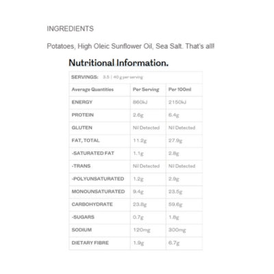 {"id":9879974019368,"title":"Proper Crisps Big Cut Marlborough Sea Salt 140g","handle":"proper-crisps-big-cut-marlborough-sea-salt-140g","description":"\u003cp\u003e \u003c\/p\u003e\n\u003ch5\u003eReviews\u003c\/h5\u003e\n\u003cp\u003eReviews go here\u003c\/p\u003e\n\u003ch5\u003eIngredients\u003c\/h5\u003e\n\u003cp\u003eAny images, tags, filters, product categories, and any other information on this website showing ingredients, nutrition panels, or allergy statements are for guidance only, as manufacturers often change their formulations without notice. Please contact the manufacturer for the most up-to-date ingredient information, or email us to confirm the ingredients of the stock currently on hand.\u003c\/p\u003e","published_at":"2025-11-11T09:47:33+11:00","created_at":"2025-11-11T09:47:33+11:00","vendor":"Proper Crisps","type":"","tags":["Crisps","Sydney Store"],"price":699,"price_min":699,"price_max":699,"available":true,"price_varies":false,"compare_at_price":null,"compare_at_price_min":0,"compare_at_price_max":0,"compare_at_price_varies":false,"variants":[{"id":50912544358696,"title":"Default Title","option1":"Default Title","option2":null,"option3":null,"sku":"9421905498708","requires_shipping":true,"taxable":true,"featured_image":null,"available":true,"name":"Proper Crisps Big Cut Marlborough Sea Salt 140g","public_title":null,"options":["Default Title"],"price":699,"weight":140,"compare_at_price":null,"inventory_quantity":4,"inventory_management":"shopify","inventory_policy":"deny","barcode":null,"requires_selling_plan":false,"selling_plan_allocations":[]}],"images":["\/\/www.vegangrocerystore.com.au\/cdn\/shop\/files\/ProperCrispsBigCutMarlboroughSeaSalt140g_1000x1000_5552a360-c891-4825-ac2c-8146bb4a0ee1.png?v=1764727923","\/\/www.vegangrocerystore.com.au\/cdn\/shop\/files\/ProperBigCutSeaSalt-NutritionalInfo.jpg?v=1768344465"],"featured_image":"\/\/www.vegangrocerystore.com.au\/cdn\/shop\/files\/ProperCrispsBigCutMarlboroughSeaSalt140g_1000x1000_5552a360-c891-4825-ac2c-8146bb4a0ee1.png?v=1764727923","options":["Title"],"media":[{"alt":null,"id":43121720787240,"position":1,"preview_image":{"aspect_ratio":1.0,"height":800,"width":800,"src":"\/\/www.vegangrocerystore.com.au\/cdn\/shop\/files\/ProperCrispsBigCutMarlboroughSeaSalt140g_1000x1000_5552a360-c891-4825-ac2c-8146bb4a0ee1.png?v=1764727923"},"aspect_ratio":1.0,"height":800,"media_type":"image","src":"\/\/www.vegangrocerystore.com.au\/cdn\/shop\/files\/ProperCrispsBigCutMarlboroughSeaSalt140g_1000x1000_5552a360-c891-4825-ac2c-8146bb4a0ee1.png?v=1764727923","width":800},{"alt":null,"id":43302485786920,"position":2,"preview_image":{"aspect_ratio":1.0,"height":400,"width":400,"src":"\/\/www.vegangrocerystore.com.au\/cdn\/shop\/files\/ProperBigCutSeaSalt-NutritionalInfo.jpg?v=1768344465"},"aspect_ratio":1.0,"height":400,"media_type":"image","src":"\/\/www.vegangrocerystore.com.au\/cdn\/shop\/files\/ProperBigCutSeaSalt-NutritionalInfo.jpg?v=1768344465","width":400}],"requires_selling_plan":false,"selling_plan_groups":[],"content":"\u003cp\u003e \u003c\/p\u003e\n\u003ch5\u003eReviews\u003c\/h5\u003e\n\u003cp\u003eReviews go here\u003c\/p\u003e\n\u003ch5\u003eIngredients\u003c\/h5\u003e\n\u003cp\u003eAny images, tags, filters, product categories, and any other information on this website showing ingredients, nutrition panels, or allergy statements are for guidance only, as manufacturers often change their formulations without notice. Please contact the manufacturer for the most up-to-date ingredient information, or email us to confirm the ingredients of the stock currently on hand.\u003c\/p\u003e"}