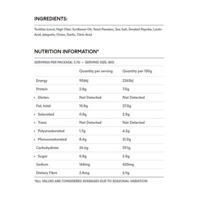 {"id":9700039393576,"title":"Proper Tortilla Chips Cheeza-Peno 150g","handle":"proper-tortilla-chips-cheeza-peno-150g","description":"\u003cp\u003e \u003c\/p\u003e\n\u003ch5\u003eReviews\u003c\/h5\u003e\n\u003cp\u003eReviews go here\u003c\/p\u003e\n\u003ch5\u003eIngredients\u003c\/h5\u003e\n\u003cp\u003eAny images, tags, filters, product categories, and any other information on this website showing ingredients, nutrition panels, or allergy statements are for guidance only, as manufacturers often change their formulations without notice. Please contact the manufacturer for the most up-to-date ingredient information, or email us to confirm the ingredients of the stock currently on hand.\u003c\/p\u003e","published_at":"2025-11-19T12:36:08+11:00","created_at":"2025-07-08T15:58:30+10:00","vendor":"Proper Crisps","type":"","tags":["Sydney Store","Tortilla Chips"],"price":699,"price_min":699,"price_max":699,"available":true,"price_varies":false,"compare_at_price":null,"compare_at_price_min":0,"compare_at_price_max":0,"compare_at_price_varies":false,"variants":[{"id":50361546604840,"title":"Default Title","option1":"Default Title","option2":null,"option3":null,"sku":"9421905498814","requires_shipping":true,"taxable":true,"featured_image":null,"available":true,"name":"Proper Tortilla Chips Cheeza-Peno 150g","public_title":null,"options":["Default Title"],"price":699,"weight":0,"compare_at_price":null,"inventory_quantity":35,"inventory_management":"shopify","inventory_policy":"deny","barcode":null,"requires_selling_plan":false,"selling_plan_allocations":[]}],"images":["\/\/www.vegangrocerystore.com.au\/cdn\/shop\/files\/ProperTortillaChipsCheeza-Peno150g.png?v=1763953384","\/\/www.vegangrocerystore.com.au\/cdn\/shop\/files\/ProperTortillaCheeza-Peno-NutritionalInfo.jpg?v=1768344482"],"featured_image":"\/\/www.vegangrocerystore.com.au\/cdn\/shop\/files\/ProperTortillaChipsCheeza-Peno150g.png?v=1763953384","options":["Title"],"media":[{"alt":null,"id":43043996762408,"position":1,"preview_image":{"aspect_ratio":1.0,"height":600,"width":600,"src":"\/\/www.vegangrocerystore.com.au\/cdn\/shop\/files\/ProperTortillaChipsCheeza-Peno150g.png?v=1763953384"},"aspect_ratio":1.0,"height":600,"media_type":"image","src":"\/\/www.vegangrocerystore.com.au\/cdn\/shop\/files\/ProperTortillaChipsCheeza-Peno150g.png?v=1763953384","width":600},{"alt":null,"id":43302491619624,"position":2,"preview_image":{"aspect_ratio":1.0,"height":400,"width":400,"src":"\/\/www.vegangrocerystore.com.au\/cdn\/shop\/files\/ProperTortillaCheeza-Peno-NutritionalInfo.jpg?v=1768344482"},"aspect_ratio":1.0,"height":400,"media_type":"image","src":"\/\/www.vegangrocerystore.com.au\/cdn\/shop\/files\/ProperTortillaCheeza-Peno-NutritionalInfo.jpg?v=1768344482","width":400}],"requires_selling_plan":false,"selling_plan_groups":[],"content":"\u003cp\u003e \u003c\/p\u003e\n\u003ch5\u003eReviews\u003c\/h5\u003e\n\u003cp\u003eReviews go here\u003c\/p\u003e\n\u003ch5\u003eIngredients\u003c\/h5\u003e\n\u003cp\u003eAny images, tags, filters, product categories, and any other information on this website showing ingredients, nutrition panels, or allergy statements are for guidance only, as manufacturers often change their formulations without notice. Please contact the manufacturer for the most up-to-date ingredient information, or email us to confirm the ingredients of the stock currently on hand.\u003c\/p\u003e"}