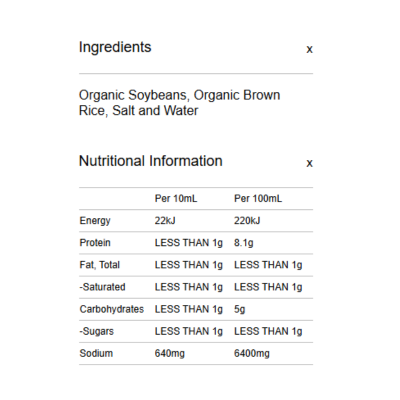{"id":9486879031592,"title":"Spiral Foods Sauce - Soy Sauce Thai Organic 200ml","handle":"spiral-foods-sauce-soy-sauce-thai-organic-200ml","description":"\u003cp\u003e \u003c\/p\u003e\n\u003ch5\u003eReviews\u003c\/h5\u003e\n\u003cp\u003eReviews go here\u003c\/p\u003e\n\u003ch5\u003eIngredients\u003c\/h5\u003e\n\u003cp\u003eAny images, tags, filters, product categories, and any other information on this website showing ingredients, nutrition panels, or allergy statements are for guidance only, as manufacturers often change their formulations without notice. Please contact the manufacturer for the most up-to-date ingredient information, or email us to confirm the ingredients of the stock currently on hand.\u003c\/p\u003e","published_at":"2025-09-15T16:34:01+10:00","created_at":"2024-11-07T16:50:11+11:00","vendor":"Spiral Foods","type":"General","tags":["Dressings","Savoury Sauces","Sydney Store"],"price":515,"price_min":515,"price_max":515,"available":true,"price_varies":false,"compare_at_price":null,"compare_at_price_min":0,"compare_at_price_max":0,"compare_at_price_varies":false,"variants":[{"id":49487097004328,"title":"Default Title","option1":"Default Title","option2":null,"option3":null,"sku":"9312336112007","requires_shipping":true,"taxable":false,"featured_image":null,"available":true,"name":"Spiral Foods Sauce - Soy Sauce Thai Organic 200ml","public_title":null,"options":["Default Title"],"price":515,"weight":0,"compare_at_price":null,"inventory_quantity":2,"inventory_management":"shopify","inventory_policy":"deny","barcode":null,"requires_selling_plan":false,"selling_plan_allocations":[]}],"images":["\/\/www.vegangrocerystore.com.au\/cdn\/shop\/files\/Spiral_Soy_Sauce_Organic_200ml_2000x2000px.jpg?v=1730958611","\/\/www.vegangrocerystore.com.au\/cdn\/shop\/files\/SpiralGlutenFreeSoySauce-NutritionalInformation.png?v=1764552793"],"featured_image":"\/\/www.vegangrocerystore.com.au\/cdn\/shop\/files\/Spiral_Soy_Sauce_Organic_200ml_2000x2000px.jpg?v=1730958611","options":["Title"],"media":[{"alt":null,"id":40433963303208,"position":1,"preview_image":{"aspect_ratio":1.0,"height":2000,"width":2000,"src":"\/\/www.vegangrocerystore.com.au\/cdn\/shop\/files\/Spiral_Soy_Sauce_Organic_200ml_2000x2000px.jpg?v=1730958611"},"aspect_ratio":1.0,"height":2000,"media_type":"image","src":"\/\/www.vegangrocerystore.com.au\/cdn\/shop\/files\/Spiral_Soy_Sauce_Organic_200ml_2000x2000px.jpg?v=1730958611","width":2000},{"alt":null,"id":43112059830568,"position":2,"preview_image":{"aspect_ratio":1.0,"height":400,"width":400,"src":"\/\/www.vegangrocerystore.com.au\/cdn\/shop\/files\/SpiralGlutenFreeSoySauce-NutritionalInformation.png?v=1764552793"},"aspect_ratio":1.0,"height":400,"media_type":"image","src":"\/\/www.vegangrocerystore.com.au\/cdn\/shop\/files\/SpiralGlutenFreeSoySauce-NutritionalInformation.png?v=1764552793","width":400}],"requires_selling_plan":false,"selling_plan_groups":[],"content":"\u003cp\u003e \u003c\/p\u003e\n\u003ch5\u003eReviews\u003c\/h5\u003e\n\u003cp\u003eReviews go here\u003c\/p\u003e\n\u003ch5\u003eIngredients\u003c\/h5\u003e\n\u003cp\u003eAny images, tags, filters, product categories, and any other information on this website showing ingredients, nutrition panels, or allergy statements are for guidance only, as manufacturers often change their formulations without notice. Please contact the manufacturer for the most up-to-date ingredient information, or email us to confirm the ingredients of the stock currently on hand.\u003c\/p\u003e"}