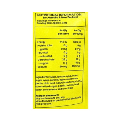 {"id":9700037951784,"title":"Sweet Lounge Vegan Fizzy Cola Bottles 130g","handle":"sweet-lounge-vegan-fizzy-cola-bottles-130g","description":"\u003cp\u003e \u003c\/p\u003e\n\u003ch5\u003eReviews\u003c\/h5\u003e\n\u003cp\u003eReviews go here\u003c\/p\u003e\n\u003ch5\u003eIngredients\u003c\/h5\u003e\n\u003cp\u003eAny images, tags, filters, product categories, and any other information on this website showing ingredients, nutrition panels, or allergy statements are for guidance only, as manufacturers often change their formulations without notice. Please contact the manufacturer for the most up-to-date ingredient information, or email us to confirm the ingredients of the stock currently on hand.\u003c\/p\u003e","published_at":"2025-07-08T15:51:23+10:00","created_at":"2025-07-08T15:51:23+10:00","vendor":"Sweet Lounge","type":"","tags":["Sweets","Sydney Store"],"price":714,"price_min":714,"price_max":714,"available":true,"price_varies":false,"compare_at_price":null,"compare_at_price_min":0,"compare_at_price_max":0,"compare_at_price_varies":false,"variants":[{"id":50361543917864,"title":"Default Title","option1":"Default Title","option2":null,"option3":null,"sku":"5060754920714","requires_shipping":true,"taxable":true,"featured_image":null,"available":true,"name":"Sweet Lounge Vegan Fizzy Cola Bottles 130g","public_title":null,"options":["Default Title"],"price":714,"weight":0,"compare_at_price":null,"inventory_quantity":19,"inventory_management":"shopify","inventory_policy":"deny","barcode":null,"requires_selling_plan":false,"selling_plan_allocations":[]}],"images":["\/\/www.vegangrocerystore.com.au\/cdn\/shop\/files\/ST040.jpg?v=1751953885","\/\/www.vegangrocerystore.com.au\/cdn\/shop\/files\/SweetLoungeCola-NutritionalInfo.jpg?v=1764028982"],"featured_image":"\/\/www.vegangrocerystore.com.au\/cdn\/shop\/files\/ST040.jpg?v=1751953885","options":["Title"],"media":[{"alt":null,"id":41844670791976,"position":1,"preview_image":{"aspect_ratio":1.0,"height":800,"width":800,"src":"\/\/www.vegangrocerystore.com.au\/cdn\/shop\/files\/ST040.jpg?v=1751953885"},"aspect_ratio":1.0,"height":800,"media_type":"image","src":"\/\/www.vegangrocerystore.com.au\/cdn\/shop\/files\/ST040.jpg?v=1751953885","width":800},{"alt":null,"id":43055982412072,"position":2,"preview_image":{"aspect_ratio":1.0,"height":400,"width":400,"src":"\/\/www.vegangrocerystore.com.au\/cdn\/shop\/files\/SweetLoungeCola-NutritionalInfo.jpg?v=1764028982"},"aspect_ratio":1.0,"height":400,"media_type":"image","src":"\/\/www.vegangrocerystore.com.au\/cdn\/shop\/files\/SweetLoungeCola-NutritionalInfo.jpg?v=1764028982","width":400}],"requires_selling_plan":false,"selling_plan_groups":[],"content":"\u003cp\u003e \u003c\/p\u003e\n\u003ch5\u003eReviews\u003c\/h5\u003e\n\u003cp\u003eReviews go here\u003c\/p\u003e\n\u003ch5\u003eIngredients\u003c\/h5\u003e\n\u003cp\u003eAny images, tags, filters, product categories, and any other information on this website showing ingredients, nutrition panels, or allergy statements are for guidance only, as manufacturers often change their formulations without notice. Please contact the manufacturer for the most up-to-date ingredient information, or email us to confirm the ingredients of the stock currently on hand.\u003c\/p\u003e"}