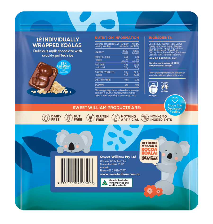 Sweet William Rice Crackle Chocolate Koala Sharepack 12 pack 180g (cold)