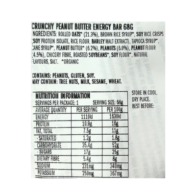 {"id":9701095571752,"title":"Clif Energy Bar Crunchy Peanut Butter 68g","handle":"tbdclif-bar-crunchy-peanut-butter","description":"\u003cp\u003e\u003cspan style=\"box-sizing: border-box; margin: 0px; padding: 0px;\"\u003e\u003c\/span\u003eOld-fashioned, home-baked cookie goodness. Whole, organic ingredients. Performance nutrition. And great taste. Whether you’re on a 150-mile bike ride or exploring a new trail, this energy bar is built to sustain your adventure.\u003c\/p\u003e\n\u003ch5\u003eReviews\u003c\/h5\u003e\n\u003cp\u003eReviews go here\u003c\/p\u003e\n\u003ch5\u003eIngredients\u003c\/h5\u003e\n\u003cp\u003eAny images, tags, filters, product categories, and any other information on this website showing ingredients, nutrition panels, or allergy statements are for guidance only, as manufacturers often change their formulations without notice. Please contact the manufacturer for the most up-to-date ingredient information, or email us to confirm the ingredients of the stock currently on hand.\u003c\/p\u003e","published_at":"2025-09-15T16:36:53+10:00","created_at":"2025-07-09T10:06:32+10:00","vendor":"Clif","type":"Food","tags":["Protein Bars","Sydney Store"],"price":354,"price_min":354,"price_max":354,"available":true,"price_varies":false,"compare_at_price":null,"compare_at_price_min":0,"compare_at_price_max":0,"compare_at_price_varies":false,"variants":[{"id":50366203035944,"title":"Default Title","option1":"Default Title","option2":null,"option3":null,"sku":"722252101204","requires_shipping":true,"taxable":true,"featured_image":null,"available":true,"name":"Clif Energy Bar Crunchy Peanut Butter 68g","public_title":null,"options":["Default Title"],"price":354,"weight":0,"compare_at_price":null,"inventory_quantity":36,"inventory_management":"shopify","inventory_policy":"deny","barcode":null,"requires_selling_plan":false,"selling_plan_allocations":[]}],"images":["\/\/www.vegangrocerystore.com.au\/cdn\/shop\/files\/download_8af8bab0-b7b3-4567-88af-67d2f4d36319.jpg?v=1763503500","\/\/www.vegangrocerystore.com.au\/cdn\/shop\/files\/CLIFpeanutbutter-NutritionalInformation.png?v=1764195830"],"featured_image":"\/\/www.vegangrocerystore.com.au\/cdn\/shop\/files\/download_8af8bab0-b7b3-4567-88af-67d2f4d36319.jpg?v=1763503500","options":["Title"],"media":[{"alt":null,"id":43006124949800,"position":1,"preview_image":{"aspect_ratio":1.0,"height":225,"width":225,"src":"\/\/www.vegangrocerystore.com.au\/cdn\/shop\/files\/download_8af8bab0-b7b3-4567-88af-67d2f4d36319.jpg?v=1763503500"},"aspect_ratio":1.0,"height":225,"media_type":"image","src":"\/\/www.vegangrocerystore.com.au\/cdn\/shop\/files\/download_8af8bab0-b7b3-4567-88af-67d2f4d36319.jpg?v=1763503500","width":225},{"alt":null,"id":43090687754536,"position":2,"preview_image":{"aspect_ratio":1.0,"height":400,"width":400,"src":"\/\/www.vegangrocerystore.com.au\/cdn\/shop\/files\/CLIFpeanutbutter-NutritionalInformation.png?v=1764195830"},"aspect_ratio":1.0,"height":400,"media_type":"image","src":"\/\/www.vegangrocerystore.com.au\/cdn\/shop\/files\/CLIFpeanutbutter-NutritionalInformation.png?v=1764195830","width":400}],"requires_selling_plan":false,"selling_plan_groups":[],"content":"\u003cp\u003e\u003cspan style=\"box-sizing: border-box; margin: 0px; padding: 0px;\"\u003e\u003c\/span\u003eOld-fashioned, home-baked cookie goodness. Whole, organic ingredients. Performance nutrition. And great taste. Whether you’re on a 150-mile bike ride or exploring a new trail, this energy bar is built to sustain your adventure.\u003c\/p\u003e\n\u003ch5\u003eReviews\u003c\/h5\u003e\n\u003cp\u003eReviews go here\u003c\/p\u003e\n\u003ch5\u003eIngredients\u003c\/h5\u003e\n\u003cp\u003eAny images, tags, filters, product categories, and any other information on this website showing ingredients, nutrition panels, or allergy statements are for guidance only, as manufacturers often change their formulations without notice. Please contact the manufacturer for the most up-to-date ingredient information, or email us to confirm the ingredients of the stock currently on hand.\u003c\/p\u003e"}