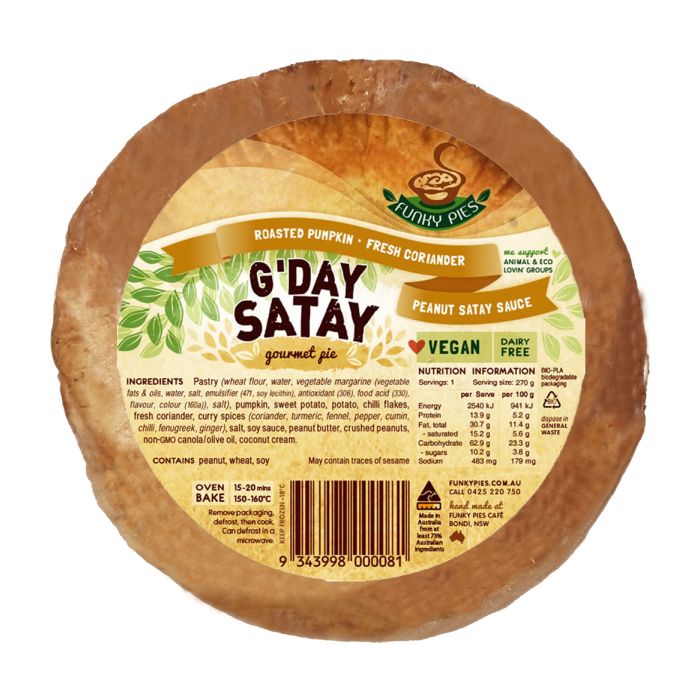 {"id":9431390781736,"title":"Funky Pie - GDay Satay 270g (cold)","handle":"tbdfunky-pies-gday-satay-cold-case-12","description":"\u003cp\u003e \u003c\/p\u003e\n\u003ch5\u003eReviews\u003c\/h5\u003e\n\u003cp\u003eReviews go here\u003c\/p\u003e\n\u003ch5\u003eIngredients\u003c\/h5\u003e\n\u003cp\u003eAny images, tags, filters, product categories, and any other information on this website showing ingredients, nutrition panels, or allergy statements are for guidance only, as manufacturers often change their formulations without notice. Please contact the manufacturer for the most up-to-date ingredient information, or email us to confirm the ingredients of the stock currently on hand.\u003c\/p\u003e\n\u003ch5\u003eImportant Shipping Note\u003c\/h5\u003e\n\u003cdiv\u003e\n\u003cspan\u003eAll orders containing chilled products, frozen products and chocolates must include a Cooler to protect them in transit. The\u003c\/span\u003e\u003cspan\u003e \u003c\/span\u003e\u003cspan\u003eCooler\u003c\/span\u003e\u003cspan\u003e will automatically add to your order when a cold product is added to your shopping cart. \u003c\/span\u003e\u003cspan\u003eFrozen items may defrost in transit, we can not recommend re-freezing. \u003c\/span\u003e\u003cspan\u003eWe will select the correct size cooler for your order. Chilled orders can only be sent to certain areas, please refer to our \u003c\/span\u003e\u003ca href=\"https:\/\/www.crueltyfreeshop.com.au\/pages\/faq#refrid\" rel=\"noopener\" target=\"_blank\" data-saferedirecturl=\"https:\/\/www.google.com\/url?q=https:\/\/www.crueltyfreeshop.com.au\/pages\/faq%23refrid\u0026amp;source=gmail\u0026amp;ust=1664430462005000\u0026amp;usg=AOvVaw3YpBIvhTwoxQRA_PVqbP_L\"\u003eFAQ\u003c\/a\u003e\u003cspan\u003e or email us at \u003c\/span\u003e\u003ca href=\"mailto:online@vegangrocerystore.com.au\" rel=\"noopener\" target=\"_blank\"\u003eonline@vegangrocerystore.\u003cwbr\u003ecom.au\u003c\/wbr\u003e\u003c\/a\u003e\n\u003c\/div\u003e","published_at":"2025-03-05T13:35:15+11:00","created_at":"2024-09-09T12:41:52+10:00","vendor":"Funky Pies","type":"Refrig food","tags":["Sydney Store"],"price":783,"price_min":783,"price_max":783,"available":false,"price_varies":false,"compare_at_price":null,"compare_at_price_min":0,"compare_at_price_max":0,"compare_at_price_varies":false,"variants":[{"id":49202169872680,"title":"Default Title","option1":"Default Title","option2":null,"option3":null,"sku":"9343998000081","requires_shipping":true,"taxable":true,"featured_image":null,"available":false,"name":"Funky Pie - GDay Satay 270g (cold)","public_title":null,"options":["Default Title"],"price":783,"weight":0,"compare_at_price":null,"inventory_quantity":0,"inventory_management":"shopify","inventory_policy":"deny","barcode":null,"requires_selling_plan":false,"selling_plan_allocations":[]}],"images":["\/\/www.vegangrocerystore.com.au\/cdn\/shop\/files\/FNKP1060R_2a8eb218-97d6-4183-9b96-74b478fc7c30.jpg?v=1765845699","\/\/www.vegangrocerystore.com.au\/cdn\/shop\/files\/gday-ingredients.jpg?v=1765845699","\/\/www.vegangrocerystore.com.au\/cdn\/shop\/files\/gday-NutritionalInfo.jpg?v=1765845699"],"featured_image":"\/\/www.vegangrocerystore.com.au\/cdn\/shop\/files\/FNKP1060R_2a8eb218-97d6-4183-9b96-74b478fc7c30.jpg?v=1765845699","options":["Title"],"media":[{"alt":null,"id":43185701716264,"position":1,"preview_image":{"aspect_ratio":1.0,"height":700,"width":700,"src":"\/\/www.vegangrocerystore.com.au\/cdn\/shop\/files\/FNKP1060R_2a8eb218-97d6-4183-9b96-74b478fc7c30.jpg?v=1765845699"},"aspect_ratio":1.0,"height":700,"media_type":"image","src":"\/\/www.vegangrocerystore.com.au\/cdn\/shop\/files\/FNKP1060R_2a8eb218-97d6-4183-9b96-74b478fc7c30.jpg?v=1765845699","width":700},{"alt":null,"id":43015557710120,"position":2,"preview_image":{"aspect_ratio":1.0,"height":400,"width":400,"src":"\/\/www.vegangrocerystore.com.au\/cdn\/shop\/files\/gday-ingredients.jpg?v=1765845699"},"aspect_ratio":1.0,"height":400,"media_type":"image","src":"\/\/www.vegangrocerystore.com.au\/cdn\/shop\/files\/gday-ingredients.jpg?v=1765845699","width":400},{"alt":null,"id":43015557742888,"position":3,"preview_image":{"aspect_ratio":1.0,"height":400,"width":400,"src":"\/\/www.vegangrocerystore.com.au\/cdn\/shop\/files\/gday-NutritionalInfo.jpg?v=1765845699"},"aspect_ratio":1.0,"height":400,"media_type":"image","src":"\/\/www.vegangrocerystore.com.au\/cdn\/shop\/files\/gday-NutritionalInfo.jpg?v=1765845699","width":400}],"requires_selling_plan":false,"selling_plan_groups":[],"content":"\u003cp\u003e \u003c\/p\u003e\n\u003ch5\u003eReviews\u003c\/h5\u003e\n\u003cp\u003eReviews go here\u003c\/p\u003e\n\u003ch5\u003eIngredients\u003c\/h5\u003e\n\u003cp\u003eAny images, tags, filters, product categories, and any other information on this website showing ingredients, nutrition panels, or allergy statements are for guidance only, as manufacturers often change their formulations without notice. Please contact the manufacturer for the most up-to-date ingredient information, or email us to confirm the ingredients of the stock currently on hand.\u003c\/p\u003e\n\u003ch5\u003eImportant Shipping Note\u003c\/h5\u003e\n\u003cdiv\u003e\n\u003cspan\u003eAll orders containing chilled products, frozen products and chocolates must include a Cooler to protect them in transit. The\u003c\/span\u003e\u003cspan\u003e \u003c\/span\u003e\u003cspan\u003eCooler\u003c\/span\u003e\u003cspan\u003e will automatically add to your order when a cold product is added to your shopping cart. \u003c\/span\u003e\u003cspan\u003eFrozen items may defrost in transit, we can not recommend re-freezing. \u003c\/span\u003e\u003cspan\u003eWe will select the correct size cooler for your order. Chilled orders can only be sent to certain areas, please refer to our \u003c\/span\u003e\u003ca href=\"https:\/\/www.crueltyfreeshop.com.au\/pages\/faq#refrid\" rel=\"noopener\" target=\"_blank\" data-saferedirecturl=\"https:\/\/www.google.com\/url?q=https:\/\/www.crueltyfreeshop.com.au\/pag
