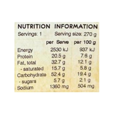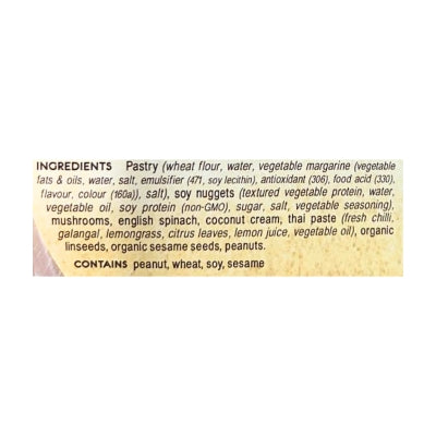 {"id":9431387013416,"title":"Funky Pie - Spicy Thai Pie 270g (cold)","handle":"tbdfunky-pies-spicy-thai-pie-cold","description":"\u003cp\u003eSpicy Thai Funky Pie: chicken-style chunks, mushrooms and spinach in tom yum sauce.\u003c\/p\u003e\n\u003cp\u003e240g. Ingredients: Pastry (Wheat flour, water, vegetable margarine (vegetable fats \u0026amp; oils, water, salt, emulsifier (471,soy lecithin), antioxidant (306), food acids (330), flavour, colour (160a)), salt), soy chunks (textured vegetable protein, water, vegetable oil, soy protein (non GMO), sugar, salt, vegetarian seasonings), mushrooms, english spinach, coconut cream, thai paste (fresh chillies, galangal, lemongrass, citrus leaves, lemon juice, vegetable oil), linseeds, sesame seeds, peanuts.\u003c\/p\u003e\n\u003cp\u003eVegan. Dairy-free. Wrapped in biodegradable Bio-packaging made from cornstarch.\u003c\/p\u003e\n\u003cp\u003e\u003cstrong\u003eIMPORTANT NOTE ABOUT ORDERING COLD PRODUCTS\u003c\/strong\u003e\u003c\/p\u003e\n\u003cp\u003eAll orders containing cold products must include a cold pack to keep them cool in transit. The Cold Pack costs $5.00 and will be automatically added to your order when you add a cold product to your shopping cart. There is no limit to how many products you can fit in a Cold Pack. Frozen products will defrost in transit, we do not recommend re-freezing. The Cold Pack can be kept for your own use or if you return it to the Cruelty Free Shop in Glebe NSW you will receive a full refund. Refrigerated products can only be sent to areas serviced by Fastway overnight couriers from Sydney; they cannot be sent by post. The areas serviced include:\u003c\/p\u003e\n\u003cul\u003e\n\u003cli\u003eVictoria: Melbourne and some surrounding areas\u003c\/li\u003e\n\u003cli\u003eNSW: Sydney, Wollongong, Newcastle and some surrounding areas and parts of Northern NSW\u003c\/li\u003e\n\u003cli\u003eQueensland: Southern Queensland, Brisbane, Sunshine Coast, Gold Coast and some surrounding areas\u003c\/li\u003e\n\u003cli\u003eSA: Adelaide\u003c\/li\u003e\n\u003cli\u003eACT: Canberra\u003c\/li\u003e\n\u003c\/ul\u003e\n\u003cp\u003eIf you are unsure whether your area is serviced please email us at \u003ca href=\"mailto:info@crueltyfreeshop.com.au\"\u003einfo@crueltyfreeshop.com.au\u003c\/a\u003e.\u003c\/p\u003e\n\u003cp\u003eFrozen products will defrost in transit, we do not recommend refreezing.\u003c\/p\u003e\n\u003cp\u003eWe cannot ship refrigerated products to any parts of WA, NT or Tasmania however we can send all our non-cold products anywhere in Austalia with Austalia Post.\u003c\/p\u003e","published_at":"2025-02-26T14:55:31+11:00","created_at":"2024-09-09T12:38:37+10:00","vendor":"Funky Pies","type":"Refrig food","tags":[],"price":783,"price_min":783,"price_max":783,"available":true,"price_varies":false,"compare_at_price":null,"compare_at_price_min":0,"compare_at_price_max":0,"compare_at_price_varies":false,"variants":[{"id":49202158895400,"title":"Default Title","option1":"Default Title","option2":null,"option3":null,"sku":"9369999598358","requires_shipping":true,"taxable":true,"featured_image":null,"available":true,"name":"Funky Pie - Spicy Thai Pie 270g (cold)","public_title":null,"options":["Default Title"],"price":783,"weight":0,"compare_at_price":null,"inventory_quantity":3,"inventory_management":"shopify","inventory_policy":"deny","barcode":null,"requires_selling_plan":false,"selling_plan_allocations":[]}],"images":["\/\/www.vegangrocerystore.com.au\/cdn\/shop\/files\/Spicy-Thai-Pie.jpg?v=1725849517","\/\/www.vegangrocerystore.com.au\/cdn\/shop\/files\/spicythai-NutritionalInfo.jpg?v=1763610434","\/\/www.vegangrocerystore.com.au\/cdn\/shop\/files\/spicythai-ingredients.jpg?v=1763610434"],"featured_image":"\/\/www.vegangrocerystore.com.au\/cdn\/shop\/files\/Spicy-Thai-Pie.jpg?v=1725849517","options":["Title"],"media":[{"alt":null,"id":40008291287336,"position":1,"preview_image":{"aspect_ratio":1.026,"height":975,"width":1000,"src":"\/\/www.vegangrocerystore.com.au\/cdn\/shop\/files\/Spicy-Thai-Pie.jpg?v=1725849517"},"aspect_ratio":1.026,"height":975,"media_type":"image","src":"\/\/www.vegangrocerystore.com.au\/cdn\/shop\/files\/Spicy-Thai-Pie.jpg?v=1725849517","width":1000},{"alt":null,"id":43015558168872,"position":2,"preview_image":{"aspect_ratio":1.0,"height":400,"width":400,"src":"\/\/www.vegangrocerystore.com.au\/cdn\/shop\/files\/spicythai-NutritionalInfo.jpg?v=1763610434"},"aspect_ratio":1.0,"height":400,"media_type":"image","src":"\/\/www.vegangrocerystore.com.au\/cdn\/shop\/files\/spicythai-NutritionalInfo.jpg?v=1763610434","width":400},{"alt":null,"id":43015558201640,"position":3,"preview_image":{"aspect_ratio":1.0,"height":400,"width":400,"src":"\/\/www.vegangrocerystore.com.au\/cdn\/shop\/files\/spicythai-ingredients.jpg?v=1763610434"},"aspect_ratio":1.0,"height":400,"media_type":"image","src":"\/\/www.vegangrocerystore.com.au\/cdn\/shop\/files\/spicythai-ingredients.jpg?v=1763610434","width":400}],"requires_selling_plan":false,"selling_plan_groups":[],"content":"\u003cp\u003eSpicy Thai Funky Pie: chicken-style chunks, mushrooms and spinach in tom yum sauce.\u003c\/p\u003e\n\u003cp\u003e240g. Ingredients: Pastry (Wheat flour, water, vegetable margarine (vegetable fats \u0026amp; oils, water, salt, emulsifier (471,soy lecithin), antioxidant (306), food acids (330), flavour, colour (160a)), salt), soy chunks (textured vegetable protein, water, vegetable oil, soy protein (non GMO), sugar, salt, vegetarian seasonings), mushrooms, english spinach, coconut cream, thai paste (fresh chillies, galangal, lemongrass, citrus leaves, lemon juice, vegetable oil), linseeds, sesame seeds, peanuts.\u003c\/p\u003e\n\u003cp\u003eVegan. Dairy-free. Wrapped in biodegradable Bio-packaging made from cornstarch.\u003c\/p\u003e\n\u003cp\u003e\u003cstrong\u003eIMPORTANT NOTE ABOUT ORDERING COLD PRODUCTS\u003c\/strong\u003e\u003c\/p\u003e\n\u003cp\u003eAll orders containing cold products must include a cold pack to keep them c