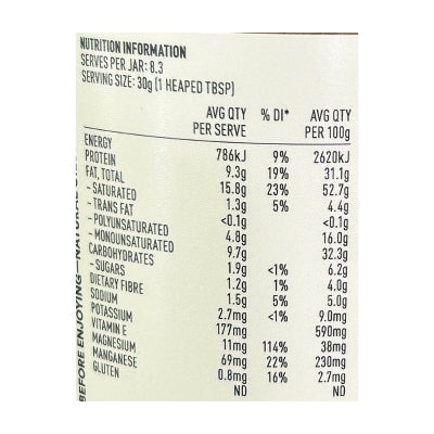 {"id":9917218095400,"title":"Noya 100% Almond Butter 250g","handle":"tbdnoyaalmondnutbutter-case-6","description":"\u003cp\u003e\u003cstrong\u003e\u003c\/strong\u003eOne of the originals, this tasty butter will show you some seriously smooth moves.\u003c\/p\u003e\n\u003cp\u003ePremium hand-picked Australian grown almonds, lightly dry-roasted to perfection then crushed and blended, creating a naturally sweet, seriously creamy staple for your pantry. This soft, silky spread is perfect in every meal and on the end of every spoon. Spread it far and wide.\u003c\/p\u003e\n\u003ch5\u003eReviews\u003c\/h5\u003e\n\u003cp\u003eReviews go here\u003c\/p\u003e\n\u003ch5\u003eIngredients\u003c\/h5\u003e\n\u003cp\u003eAny images, tags, filters, product categories, and any other information on this website showing ingredients, nutrition panels, or allergy statements are for guidance only, as manufacturers often change their formulations without notice. Please contact the manufacturer for the most up-to-date ingredient information, or email us to confirm the ingredients of the stock currently on hand.\u003c\/p\u003e","published_at":"2025-11-13T10:47:39+11:00","created_at":"2025-11-13T10:47:27+11:00","vendor":"Noya","type":"Food (GST Free)","tags":["Savoury Spreads","Sweet Spreads","Sydney Store"],"price":995,"price_min":995,"price_max":995,"available":true,"price_varies":false,"compare_at_price":null,"compare_at_price_min":0,"compare_at_price_max":0,"compare_at_price_varies":false,"variants":[{"id":50955472732456,"title":"Default Title","option1":"Default Title","option2":null,"option3":null,"sku":"9312016005827","requires_shipping":true,"taxable":false,"featured_image":null,"available":true,"name":"Noya 100% Almond Butter 250g","public_title":null,"options":["Default Title"],"price":995,"weight":0,"compare_at_price":null,"inventory_quantity":6,"inventory_management":"shopify","inventory_policy":"deny","barcode":null,"requires_selling_plan":false,"selling_plan_allocations":[]}],"images":["\/\/www.vegangrocerystore.com.au\/cdn\/shop\/files\/27f199ed5c2b24408b70bc5dc1eb5d59aae36c9a.jpg?v=1762991249","\/\/www.vegangrocerystore.com.au\/cdn\/shop\/files\/noyaalmond-Ingredients.jpg?v=1764563389","\/\/www.vegangrocerystore.com.au\/cdn\/shop\/files\/noyaalmond-NutritionalInformation.jpg?v=1764563389"],"featured_image":"\/\/www.vegangrocerystore.com.au\/cdn\/shop\/files\/27f199ed5c2b24408b70bc5dc1eb5d59aae36c9a.jpg?v=1762991249","options":["Title"],"media":[{"alt":null,"id":42950317080872,"position":1,"preview_image":{"aspect_ratio":1.0,"height":670,"width":670,"src":"\/\/www.vegangrocerystore.com.au\/cdn\/shop\/files\/27f199ed5c2b24408b70bc5dc1eb5d59aae36c9a.jpg?v=1762991249"},"aspect_ratio":1.0,"height":670,"media_type":"image","src":"\/\/www.vegangrocerystore.com.au\/cdn\/shop\/files\/27f199ed5c2b24408b70bc5dc1eb5d59aae36c9a.jpg?v=1762991249","width":670},{"alt":null,"id":43112758149416,"position":2,"preview_image":{"aspect_ratio":1.0,"height":400,"width":400,"src":"\/\/www.vegangrocerystore.com.au\/cdn\/shop\/files\/noyaalmond-Ingredients.jpg?v=1764563389"},"aspect_ratio":1.0,"height":400,"media_type":"image","src":"\/\/www.vegangrocerystore.com.au\/cdn\/shop\/files\/noyaalmond-Ingredients.jpg?v=1764563389","width":400},{"alt":null,"id":43112758182184,"position":3,"preview_image":{"aspect_ratio":1.0,"height":400,"width":400,"src":"\/\/www.vegangrocerystore.com.au\/cdn\/shop\/files\/noyaalmond-NutritionalInformation.jpg?v=1764563389"},"aspect_ratio":1.0,"height":400,"media_type":"image","src":"\/\/www.vegangrocerystore.com.au\/cdn\/shop\/files\/noyaalmond-NutritionalInformation.jpg?v=1764563389","width":400}],"requires_selling_plan":false,"selling_plan_groups":[],"content":"\u003cp\u003e\u003cstrong\u003e\u003c\/strong\u003eOne of the originals, this tasty butter will show you some seriously smooth moves.\u003c\/p\u003e\n\u003cp\u003ePremium hand-picked Australian grown almonds, lightly dry-roasted to perfection then crushed and blended, creating a naturally sweet, seriously creamy staple for your pantry. This soft, silky spread is perfect in every meal and on the end of every spoon. Spread it far and wide.\u003c\/p\u003e\n\u003ch5\u003eReviews\u003c\/h5\u003e\n\u003cp\u003eReviews go here\u003c\/p\u003e\n\u003ch5\u003eIngredients\u003c\/h5\u003e\n\u003cp\u003eAny images, tags, filters, product categories, and any other information on this website showing ingredients, nutrition panels, or allergy statements are for guidance only, as manufacturers often change their formulations without notice. Please contact the manufacturer for the most up-to-date ingredient information, or email us to confirm the ingredients of the stock currently on hand.\u003c\/p\u003e"}