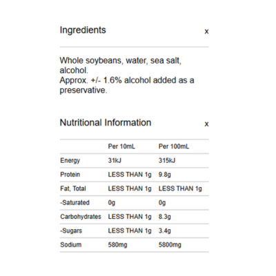 {"id":9488119857448,"title":"Spiral Foods Sauce - Tamari Sauce Genuine 250ml","handle":"tbdspiralfoodstamarisauce-case-6","description":"\u003cp\u003eUse as a dipping sauce for sushi and sashimi, teriyaki or as a seasoning for crackers or steamed dishes.\u003c\/p\u003e\n\u003cp\u003eTamari (Wheat Free) is a traditional whole food made from the liquid that exudes from soybean miso when it ferments. Tamari has a stronger taste and aroma as well as a thick rich texture. It is mainly produced in Aichi Prefecture, central western Japan, and has the same nutritional value as Shoyu. Commercial Tamaris are being made but we feel they do not reflect the taste of our real Traditional Tamari. Spiral Foods Tamari is made only as soy sauce not from miso.\u003c\/p\u003e\n\u003c!-- TABS --\u003e\n\u003ch5\u003eReviews\u003c\/h5\u003e\n\u003cp\u003eReviews go here\u003c\/p\u003e\n\u003ch5\u003eIngredients\u003c\/h5\u003e\n\u003cp\u003eAny images, tags, filters, product categories, and any other information on this website showing ingredients, nutrition panels, or allergy statements are for guidance only, as manufacturers often change their formulations without notice. Please contact the manufacturer for the most up-to-date ingredient information, or email us to confirm the ingredients of the stock currently on hand.\u003c\/p\u003e\n\u003c!-- \/TABS --\u003e","published_at":"2025-03-05T12:37:20+11:00","created_at":"2024-11-08T10:37:12+11:00","vendor":"Spiral Foods","type":"Food (GST Free)","tags":["Dressings","Savoury Sauces","Sydney Store"],"price":668,"price_min":668,"price_max":668,"available":true,"price_varies":false,"compare_at_price":null,"compare_at_price_min":0,"compare_at_price_max":0,"compare_at_price_varies":false,"variants":[{"id":49490890391848,"title":"Default Title","option1":"Default Title","option2":null,"option3":null,"sku":"9312336101117","requires_shipping":true,"taxable":false,"featured_image":null,"available":true,"name":"Spiral Foods Sauce - Tamari Sauce Genuine 250ml","public_title":null,"options":["Default Title"],"price":668,"weight":0,"compare_at_price":null,"inventory_quantity":2,"inventory_management":"shopify","inventory_policy":"deny","barcode":null,"requires_selling_plan":false,"selling_plan_allocations":[]}],"images":["\/\/www.vegangrocerystore.com.au\/cdn\/shop\/files\/Spiral_Sauc_Tamari250_1.jpg?v=1731022632","\/\/www.vegangrocerystore.com.au\/cdn\/shop\/files\/SpiralGenuineTamari-NutritionalInformation.png?v=1764552660"],"featured_image":"\/\/www.vegangrocerystore.com.au\/cdn\/shop\/files\/Spiral_Sauc_Tamari250_1.jpg?v=1731022632","options":["Title"],"media":[{"alt":null,"id":40440135745832,"position":1,"preview_image":{"aspect_ratio":1.0,"height":2000,"width":2000,"src":"\/\/www.vegangrocerystore.com.au\/cdn\/shop\/files\/Spiral_Sauc_Tamari250_1.jpg?v=1731022632"},"aspect_ratio":1.0,"height":2000,"media_type":"image","src":"\/\/www.vegangrocerystore.com.au\/cdn\/shop\/files\/Spiral_Sauc_Tamari250_1.jpg?v=1731022632","width":2000},{"alt":null,"id":43112054358312,"position":2,"preview_image":{"aspect_ratio":1.0,"height":400,"width":400,"src":"\/\/www.vegangrocerystore.com.au\/cdn\/shop\/files\/SpiralGenuineTamari-NutritionalInformation.png?v=1764552660"},"aspect_ratio":1.0,"height":400,"media_type":"image","src":"\/\/www.vegangrocerystore.com.au\/cdn\/shop\/files\/SpiralGenuineTamari-NutritionalInformation.png?v=1764552660","width":400}],"requires_selling_plan":false,"selling_plan_groups":[],"content":"\u003cp\u003eUse as a dipping sauce for sushi and sashimi, teriyaki or as a seasoning for crackers or steamed dishes.\u003c\/p\u003e\n\u003cp\u003eTamari (Wheat Free) is a traditional whole food made from the liquid that exudes from soybean miso when it ferments. Tamari has a stronger taste and aroma as well as a thick rich texture. It is mainly produced in Aichi Prefecture, central western Japan, and has the same nutritional value as Shoyu. Commercial Tamaris are being made but we feel they do not reflect the taste of our real Traditional Tamari. Spiral Foods Tamari is made only as soy sauce not from miso.\u003c\/p\u003e\n\u003c!-- TABS --\u003e\n\u003ch5\u003eReviews\u003c\/h5\u003e\n\u003cp\u003eReviews go here\u003c\/p\u003e\n\u003ch5\u003eIngredients\u003c\/h5\u003e\n\u003cp\u003eAny images, tags, filters, product categories, and any other information on this website showing ingredients, nutrition panels, or allergy statements are for guidance only, as manufacturers often change their formulations without notice. Please contact the manufacturer for the most up-to-date ingredient information, or email us to confirm the ingredients of the stock currently on hand.\u003c\/p\u003e\n\u003c!-- \/TABS --\u003e"}