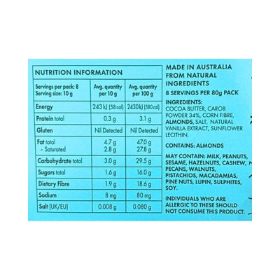 {"id":9701086527784,"title":"The Carob Kitchen Carob Bar Vegan 80g (cold)","handle":"the-carob-kitchen-carob-bar-vegan-80g","description":"\u003cp\u003e \u003c\/p\u003e\n\u003ch5\u003eReviews\u003c\/h5\u003e\n\u003cp\u003eReviews go here\u003c\/p\u003e\n\u003ch5\u003eIngredients\u003c\/h5\u003e\n\u003cp\u003eAny images, tags, filters, product categories, and any other information on this website showing ingredients, nutrition panels, or allergy statements are for guidance only, as manufacturers often change their formulations without notice. Please contact the manufacturer for the most up-to-date ingredient information, or email us to confirm the ingredients of the stock currently on hand.\u003c\/p\u003e\n\u003ch5\u003eImportant Shipping Note\u003c\/h5\u003e\n\u003cdiv\u003e\n\u003cspan\u003eAll orders containing chilled products, frozen products and chocolates must include a Cooler to protect them in transit. The\u003c\/span\u003e\u003cspan\u003e \u003c\/span\u003e\u003cspan\u003eCooler\u003c\/span\u003e\u003cspan\u003e will automatically add to your order when a cold product is added to your shopping cart. \u003c\/span\u003e\u003cspan\u003eFrozen items may defrost in transit, we can not recommend re-freezing. \u003c\/span\u003e\u003cspan\u003eWe will select the correct size cooler for your order. Chilled orders can only be sent to certain areas, please refer to our \u003c\/span\u003e\u003ca href=\"https:\/\/www.crueltyfreeshop.com.au\/pages\/faq#refrid\" rel=\"noopener\" target=\"_blank\" data-saferedirecturl=\"https:\/\/www.google.com\/url?q=https:\/\/www.crueltyfreeshop.com.au\/pages\/faq%23refrid\u0026amp;source=gmail\u0026amp;ust=1664430462005000\u0026amp;usg=AOvVaw3YpBIvhTwoxQRA_PVqbP_L\"\u003eFAQ\u003c\/a\u003e\u003cspan\u003e or email us at \u003c\/span\u003e\u003ca href=\"mailto:online@vegangrocerystore.com.au\" rel=\"noopener\" target=\"_blank\"\u003eonline@vegangrocerystore.\u003cwbr\u003ecom.au\u003c\/wbr\u003e\u003c\/a\u003e\n\u003c\/div\u003e","published_at":"2025-11-21T15:53:56+11:00","created_at":"2025-07-09T09:18:52+10:00","vendor":"The Carob Kitchen","type":"","tags":["Carob","Chocolate","Sydney Store"],"price":885,"price_min":885,"price_max":885,"available":true,"price_varies":false,"compare_at_price":null,"compare_at_price_min":0,"compare_at_price_max":0,"compare_at_price_varies":false,"variants":[{"id":50366119313704,"title":"Default Title","option1":"Default Title","option2":null,"option3":null,"sku":"9354396000078","requires_shipping":true,"taxable":true,"featured_image":null,"available":true,"name":"The Carob Kitchen Carob Bar Vegan 80g (cold)","public_title":null,"options":["Default Title"],"price":885,"weight":0,"compare_at_price":null,"inventory_quantity":10,"inventory_management":"shopify","inventory_policy":"deny","barcode":null,"requires_selling_plan":false,"selling_plan_allocations":[]}],"images":["\/\/www.vegangrocerystore.com.au\/cdn\/shop\/files\/CARB145.jpg?v=1752016734","\/\/www.vegangrocerystore.com.au\/cdn\/shop\/files\/carobbar-NutritionalInfo.jpg?v=1763959933"],"featured_image":"\/\/www.vegangrocerystore.com.au\/cdn\/shop\/files\/CARB145.jpg?v=1752016734","options":["Title"],"media":[{"alt":null,"id":41852854075688,"position":1,"preview_image":{"aspect_ratio":0.484,"height":1000,"width":484,"src":"\/\/www.vegangrocerystore.com.au\/cdn\/shop\/files\/CARB145.jpg?v=1752016734"},"aspect_ratio":0.484,"height":1000,"media_type":"image","src":"\/\/www.vegangrocerystore.com.au\/cdn\/shop\/files\/CARB145.jpg?v=1752016734","width":484},{"alt":null,"id":43044720083240,"position":2,"preview_image":{"aspect_ratio":1.0,"height":400,"width":400,"src":"\/\/www.vegangrocerystore.com.au\/cdn\/shop\/files\/carobbar-NutritionalInfo.jpg?v=1763959933"},"aspect_ratio":1.0,"height":400,"media_type":"image","src":"\/\/www.vegangrocerystore.com.au\/cdn\/shop\/files\/carobbar-NutritionalInfo.jpg?v=1763959933","width":400}],"requires_selling_plan":false,"selling_plan_groups":[],"content":"\u003cp\u003e \u003c\/p\u003e\n\u003ch5\u003eReviews\u003c\/h5\u003e\n\u003cp\u003eReviews go here\u003c\/p\u003e\n\u003ch5\u003eIngredients\u003c\/h5\u003e\n\u003cp\u003eAny images, tags, filters, product categories, and any other information on this website showing ingredients, nutrition panels, or allergy statements are for guidance only, as manufacturers often change their formulations without notice. Please contact the manufacturer for the most up-to-date ingredient information, or email us to confirm the ingredients of the stock currently on hand.\u003c\/p\u003e\n\u003ch5\u003eImportant Shipping Note\u003c\/h5\u003e\n\u003cdiv\u003e\n\u003cspan\u003eAll orders containing chilled products, frozen products and chocolates must include a Cooler to protect them in transit. The\u003c\/span\u003e\u003cspan\u003e \u003c\/span\u003e\u003cspan\u003eCooler\u003c\/span\u003e\u003cspan\u003e will automatically add to your order when a cold product is added to your shopping cart. \u003c\/span\u003e\u003cspan\u003eFrozen items may defrost in transit, we can not recommend re-freezing. \u003c\/span\u003e\u003cspan\u003eWe will select the correct size cooler for your order. Chilled orders can only be sent to certain areas, please refer to our \u003c\/span\u003e\u003ca href=\"https:\/\/www.crueltyfreeshop.com.au\/pages\/faq#refrid\" rel=\"noopener\" target=\"_blank\" data-saferedirecturl=\"https:\/\/www.google.com\/url?q=https:\/\/www.crueltyfreeshop.com.au\/pages\/faq%23refrid\u0026amp;source=gmail\u0026amp;ust=1664430462005000\u0026amp;usg=AOvVaw3YpBIvhTwoxQRA_PVqbP_L\"\u003eFAQ\u003c\/a\u003e\u003cspan\u003e or email us at \u003c\/span\u003e\u003ca href=\"mailto:online@vegangrocerystore.com.au\" rel=\"noopener\" target=\"_blank\"\u003eonline@vegangrocerystore.\u003cwbr\u003ecom.au\u003c\/wbr\u003e\u003c\/a\u003e\n\u003c\/div\u003e"}