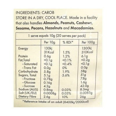 {"id":9701086593320,"title":"The Carob Kitchen Carob Powder Raw 200g","handle":"the-carob-kitchen-carob-powder-raw-200g","description":"","published_at":"2025-07-09T09:19:04+10:00","created_at":"2025-07-09T09:19:03+10:00","vendor":"The Carob Kitchen","type":"","tags":[],"price":915,"price_min":915,"price_max":915,"available":true,"price_varies":false,"compare_at_price":null,"compare_at_price_min":0,"compare_at_price_max":0,"compare_at_price_varies":false,"variants":[{"id":50366119379240,"title":"Default Title","option1":"Default Title","option2":null,"option3":null,"sku":"680569564993","requires_shipping":true,"taxable":false,"featured_image":null,"available":true,"name":"The Carob Kitchen Carob Powder Raw 200g","public_title":null,"options":["Default Title"],"price":915,"weight":0,"compare_at_price":null,"inventory_quantity":3,"inventory_management":"shopify","inventory_policy":"deny","barcode":null,"requires_selling_plan":false,"selling_plan_allocations":[]}],"images":["\/\/www.vegangrocerystore.com.au\/cdn\/shop\/files\/CARB107.jpg?v=1752016746","\/\/www.vegangrocerystore.com.au\/cdn\/shop\/files\/carobrawpowder-NutritionalInformation.jpg?v=1764561031"],"featured_image":"\/\/www.vegangrocerystore.com.au\/cdn\/shop\/files\/CARB107.jpg?v=1752016746","options":["Title"],"media":[{"alt":null,"id":41852854206760,"position":1,"preview_image":{"aspect_ratio":0.748,"height":1000,"width":748,"src":"\/\/www.vegangrocerystore.com.au\/cdn\/shop\/files\/CARB107.jpg?v=1752016746"},"aspect_ratio":0.748,"height":1000,"media_type":"image","src":"\/\/www.vegangrocerystore.com.au\/cdn\/shop\/files\/CARB107.jpg?v=1752016746","width":748},{"alt":null,"id":43112601846056,"position":2,"preview_image":{"aspect_ratio":1.0,"height":400,"width":400,"src":"\/\/www.vegangrocerystore.com.au\/cdn\/shop\/files\/carobrawpowder-NutritionalInformation.jpg?v=1764561031"},"aspect_ratio":1.0,"height":400,"media_type":"image","src":"\/\/www.vegangrocerystore.com.au\/cdn\/shop\/files\/carobrawpowder-NutritionalInformation.jpg?v=1764561031","width":400}],"requires_selling_plan":false,"selling_plan_groups":[],"content":""}