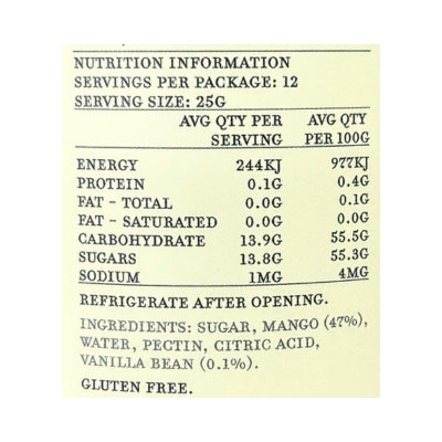 {"id":9479524385064,"title":"Yarra Valley Preserves - Jam Mango \u0026 Vanilla Bean 300g","handle":"yarra-valley-preserves-jam-mango-and-vanilla-bean-300g","description":"\u003cp\u003e \u003c\/p\u003e\n\u003ch5\u003eReviews\u003c\/h5\u003e\n\u003cp\u003eReviews go here\u003c\/p\u003e\n\u003ch5\u003eIngredients\u003c\/h5\u003e\n\u003cp\u003eAny images, tags, filters, product categories, and any other information on this website showing ingredients, nutrition panels, or allergy statements are for guidance only, as manufacturers often change their formulations without notice. Please contact the manufacturer for the most up-to-date ingredient information, or email us to confirm the ingredients of the stock currently on hand.\u003c\/p\u003e","published_at":"2025-11-19T11:22:08+11:00","created_at":"2024-10-28T15:34:11+11:00","vendor":"Yarra Valley","type":"General","tags":["Jam","Sydney Store"],"price":1043,"price_min":1043,"price_max":1043,"available":true,"price_varies":false,"compare_at_price":null,"compare_at_price_min":0,"compare_at_price_max":0,"compare_at_price_varies":false,"variants":[{"id":49444823007528,"title":"Default Title","option1":"Default Title","option2":null,"option3":null,"sku":"9328596001951","requires_shipping":true,"taxable":false,"featured_image":null,"available":true,"name":"Yarra Valley Preserves - Jam Mango \u0026 Vanilla Bean 300g","public_title":null,"options":["Default Title"],"price":1043,"weight":0,"compare_at_price":null,"inventory_quantity":6,"inventory_management":"shopify","inventory_policy":"deny","barcode":null,"requires_selling_plan":false,"selling_plan_allocations":[]}],"images":["\/\/www.vegangrocerystore.com.au\/cdn\/shop\/files\/YRGM1060R.jpg?v=1764546290","\/\/www.vegangrocerystore.com.au\/cdn\/shop\/files\/YarraMangoVanillaJam-NutritionalInformation.jpg?v=1764725899"],"featured_image":"\/\/www.vegangrocerystore.com.au\/cdn\/shop\/files\/YRGM1060R.jpg?v=1764546290","options":["Title"],"media":[{"alt":null,"id":43111633355048,"position":1,"preview_image":{"aspect_ratio":1.0,"height":400,"width":400,"src":"\/\/www.vegangrocerystore.com.au\/cdn\/shop\/files\/YRGM1060R.jpg?v=1764546290"},"aspect_ratio":1.0,"height":400,"media_type":"image","src":"\/\/www.vegangrocerystore.com.au\/cdn\/shop\/files\/YRGM1060R.jpg?v=1764546290","width":400},{"alt":null,"id":43121572675880,"position":2,"preview_image":{"aspect_ratio":1.0,"height":400,"width":400,"src":"\/\/www.vegangrocerystore.com.au\/cdn\/shop\/files\/YarraMangoVanillaJam-NutritionalInformation.jpg?v=1764725899"},"aspect_ratio":1.0,"height":400,"media_type":"image","src":"\/\/www.vegangrocerystore.com.au\/cdn\/shop\/files\/YarraMangoVanillaJam-NutritionalInformation.jpg?v=1764725899","width":400}],"requires_selling_plan":false,"selling_plan_groups":[],"content":"\u003cp\u003e \u003c\/p\u003e\n\u003ch5\u003eReviews\u003c\/h5\u003e\n\u003cp\u003eReviews go here\u003c\/p\u003e\n\u003ch5\u003eIngredients\u003c\/h5\u003e\n\u003cp\u003eAny images, tags, filters, product categories, and any other information on this website showing ingredients, nutrition panels, or allergy statements are for guidance only, as manufacturers often change their formulations without notice. Please contact the manufacturer for the most up-to-date ingredient information, or email us to confirm the ingredients of the stock currently on hand.\u003c\/p\u003e"}